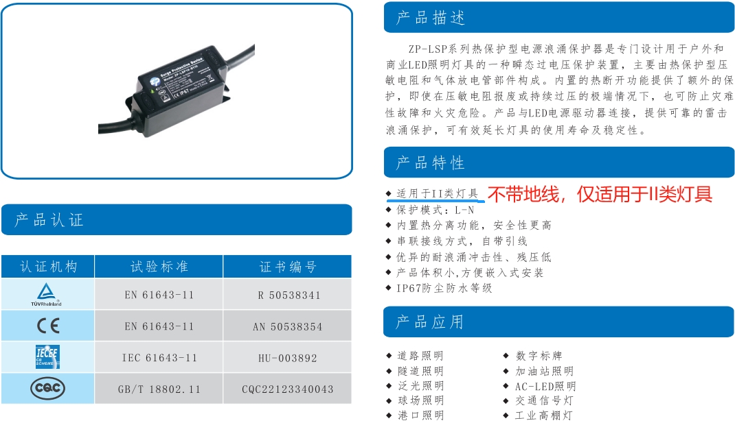 中鹏防雷-10kV-LED路灯 隧道灯专用浪涌保护器