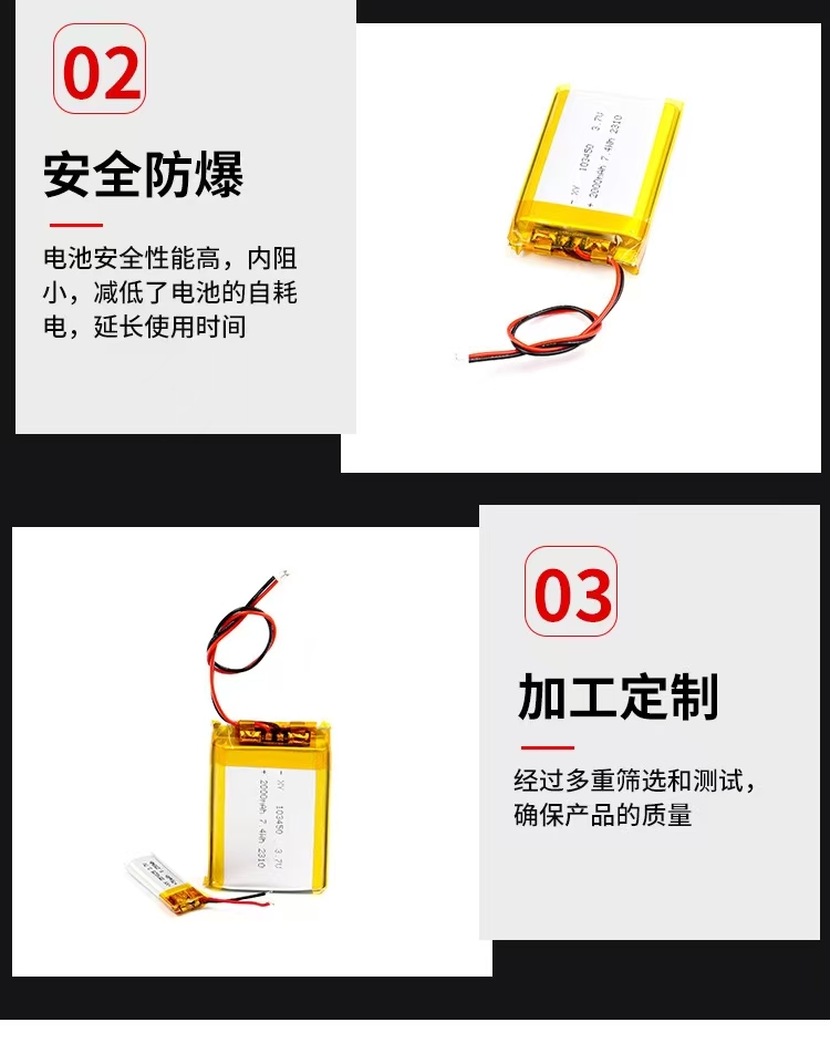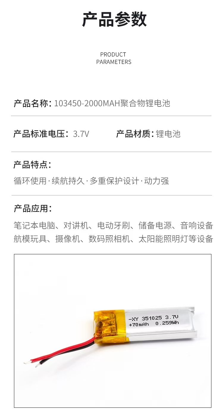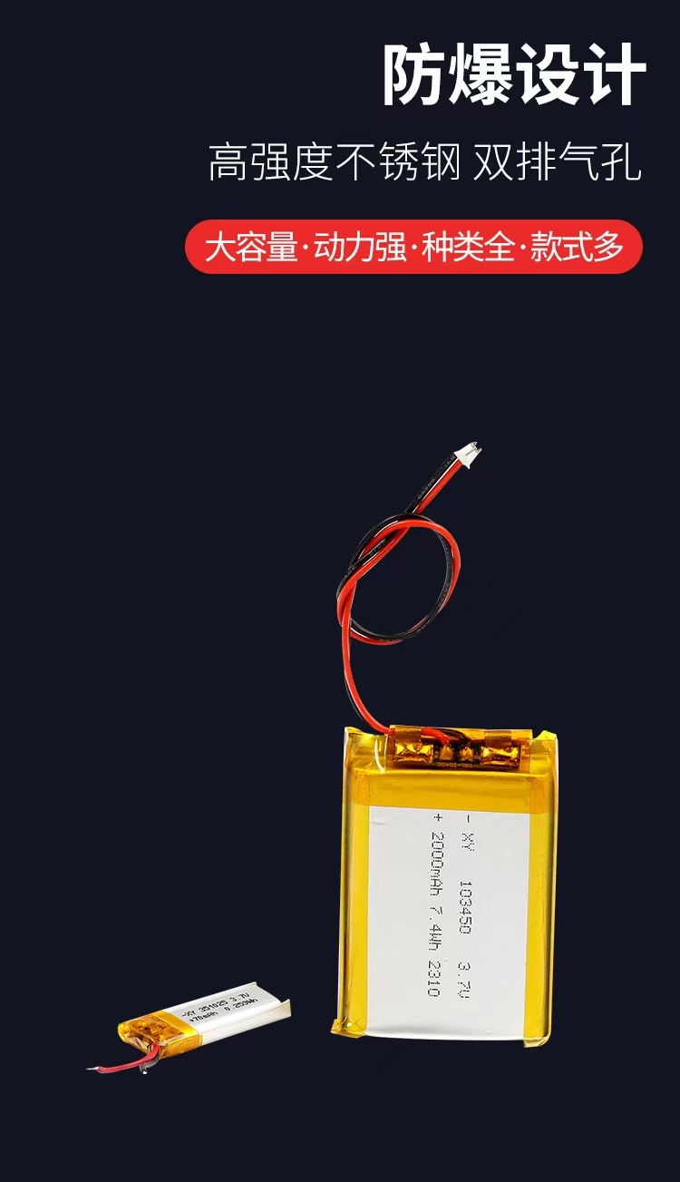 定做3.7V聚合物软包刷卡机牵引绳蓝牙电子设备美容仪