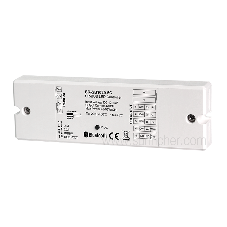 1个控制器集成4种设备模式 DIM, CCT, RGBW 和 RGB+CCT, 可通过拨码开关选择模式