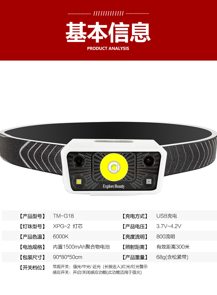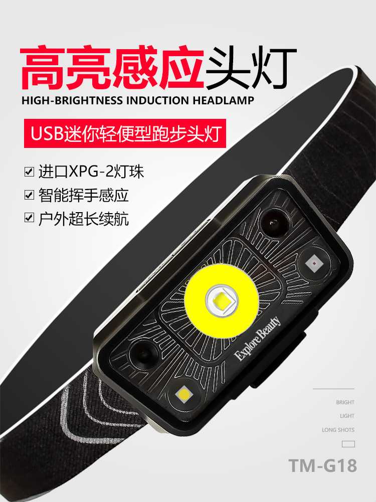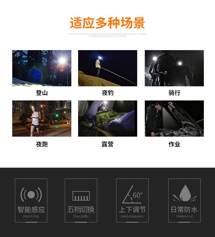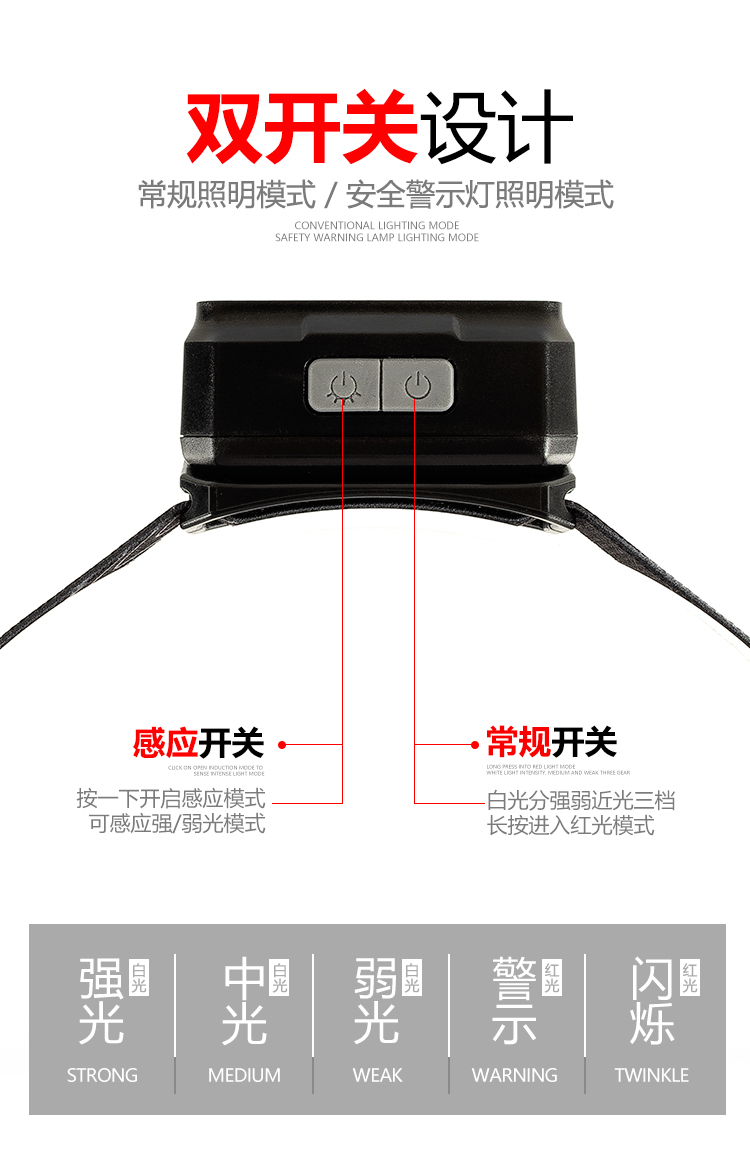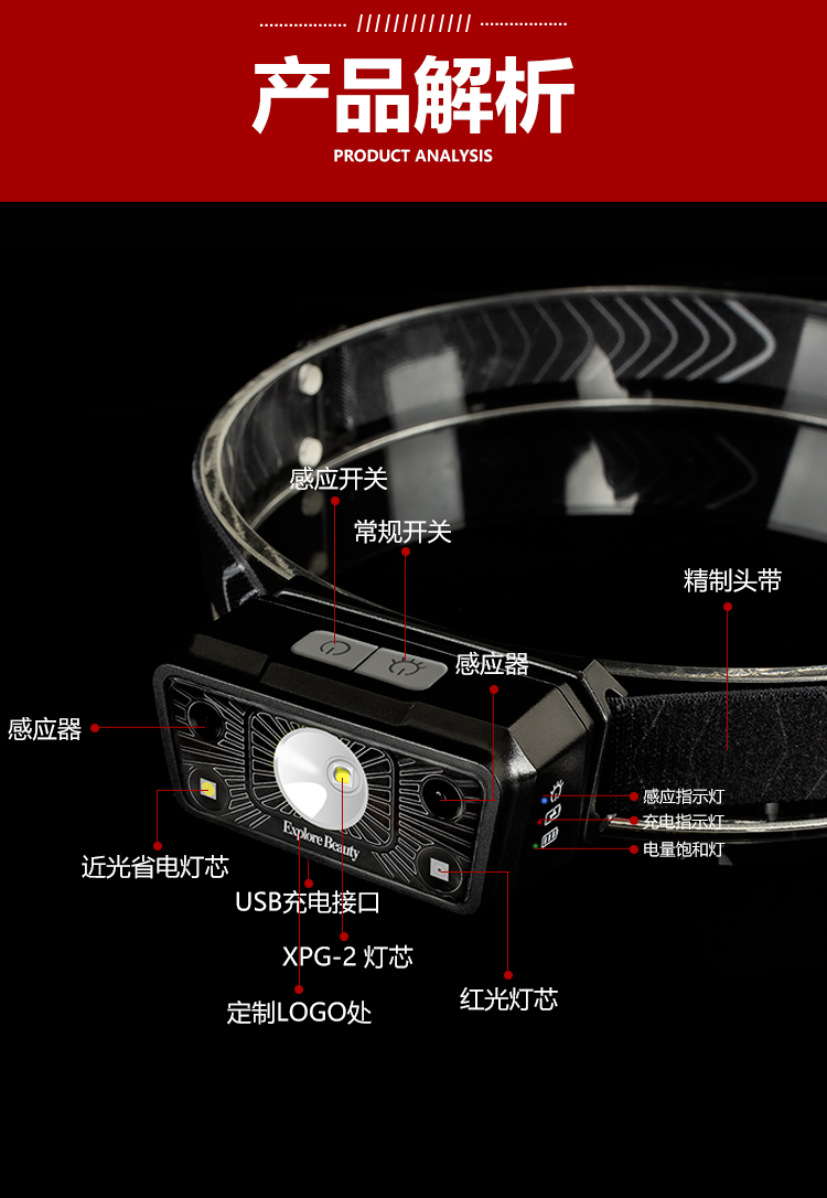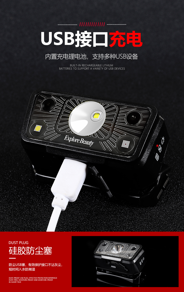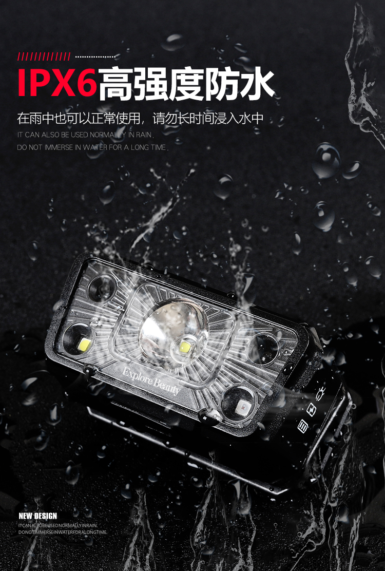 新款Type-C充电感应头灯led夜钓鱼便携式强光夜跑高档户