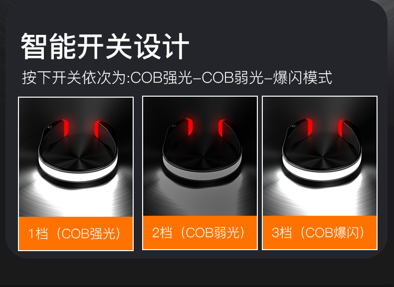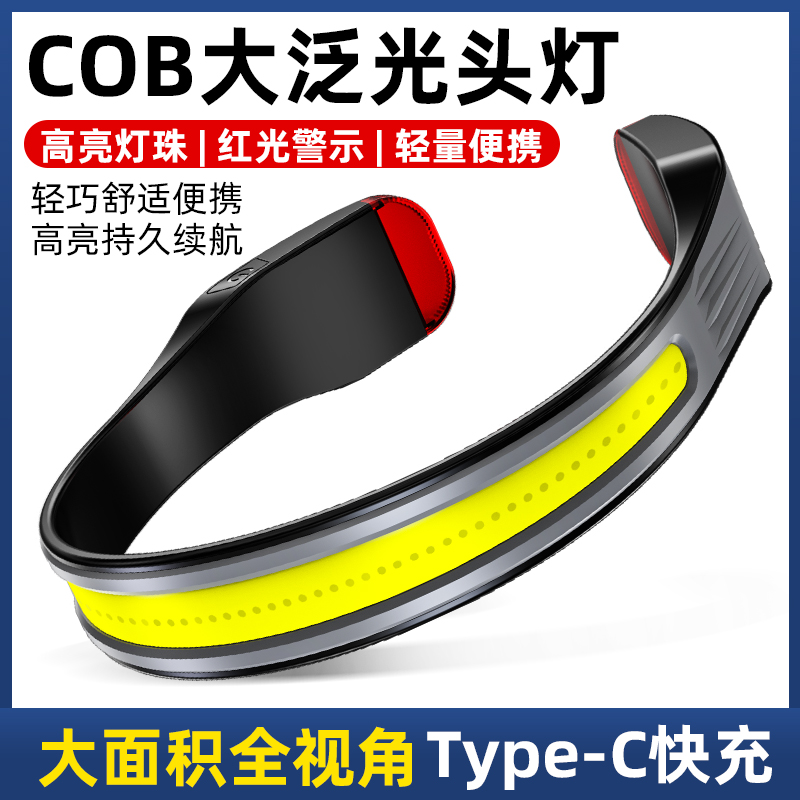 新款无头灯带便携两用头灯 Type-C充电户外跑步钓鱼灯 挂