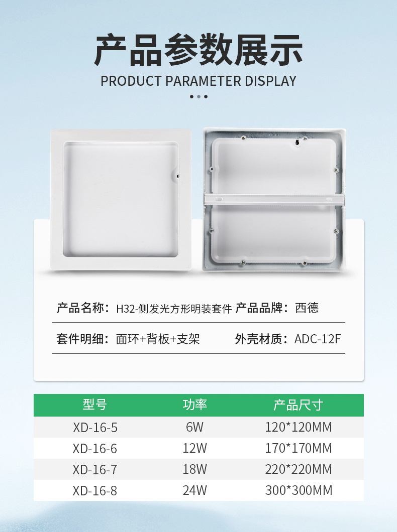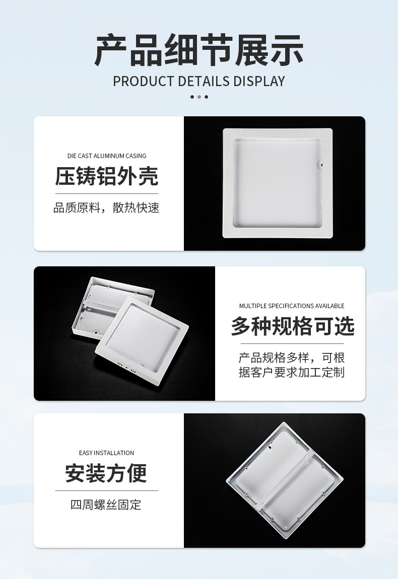 led筒灯外壳压铸铝侧发光明装方形面板灯铝材天花灯商场