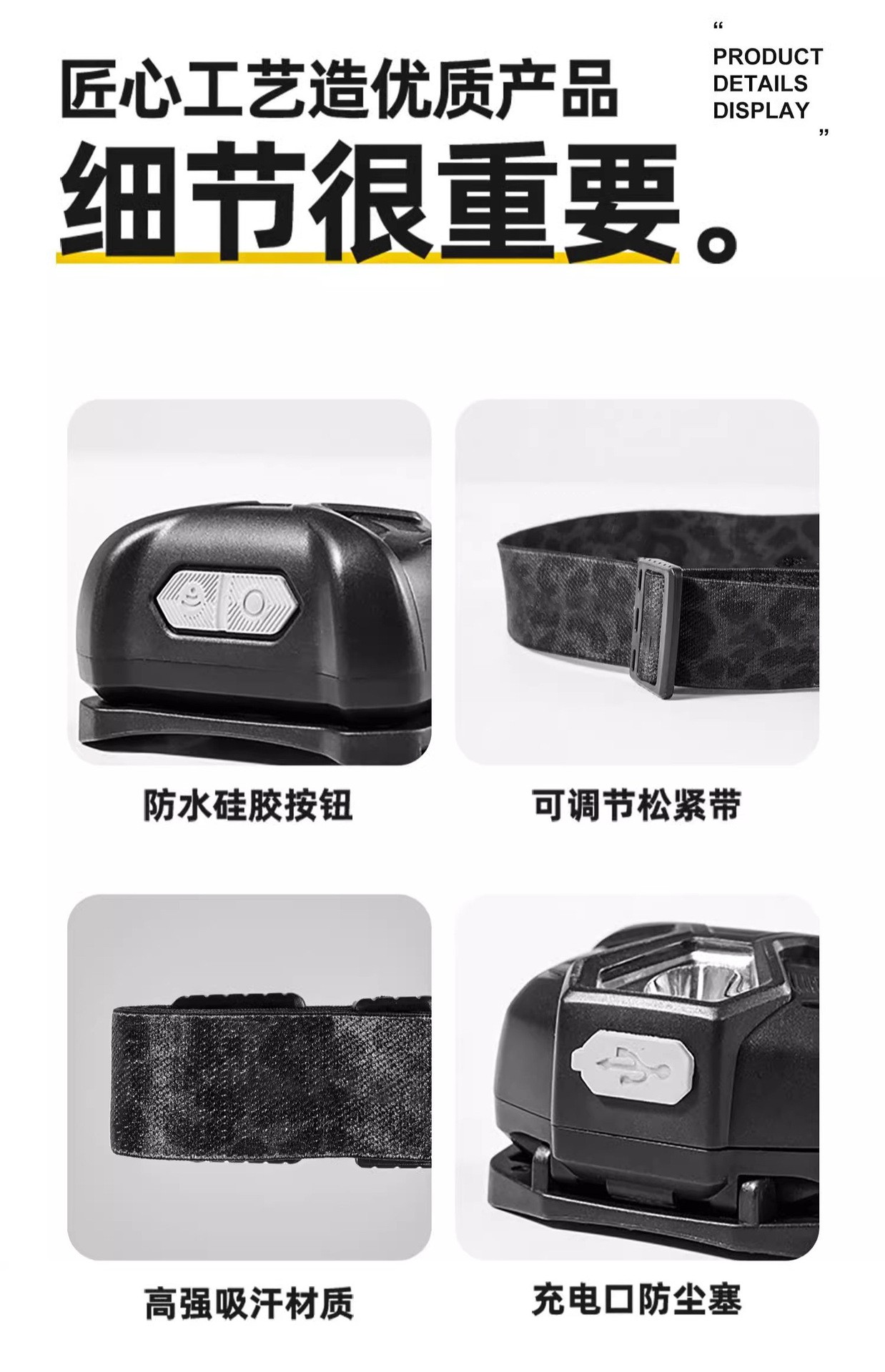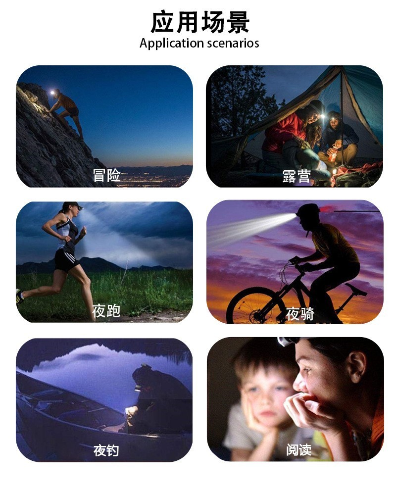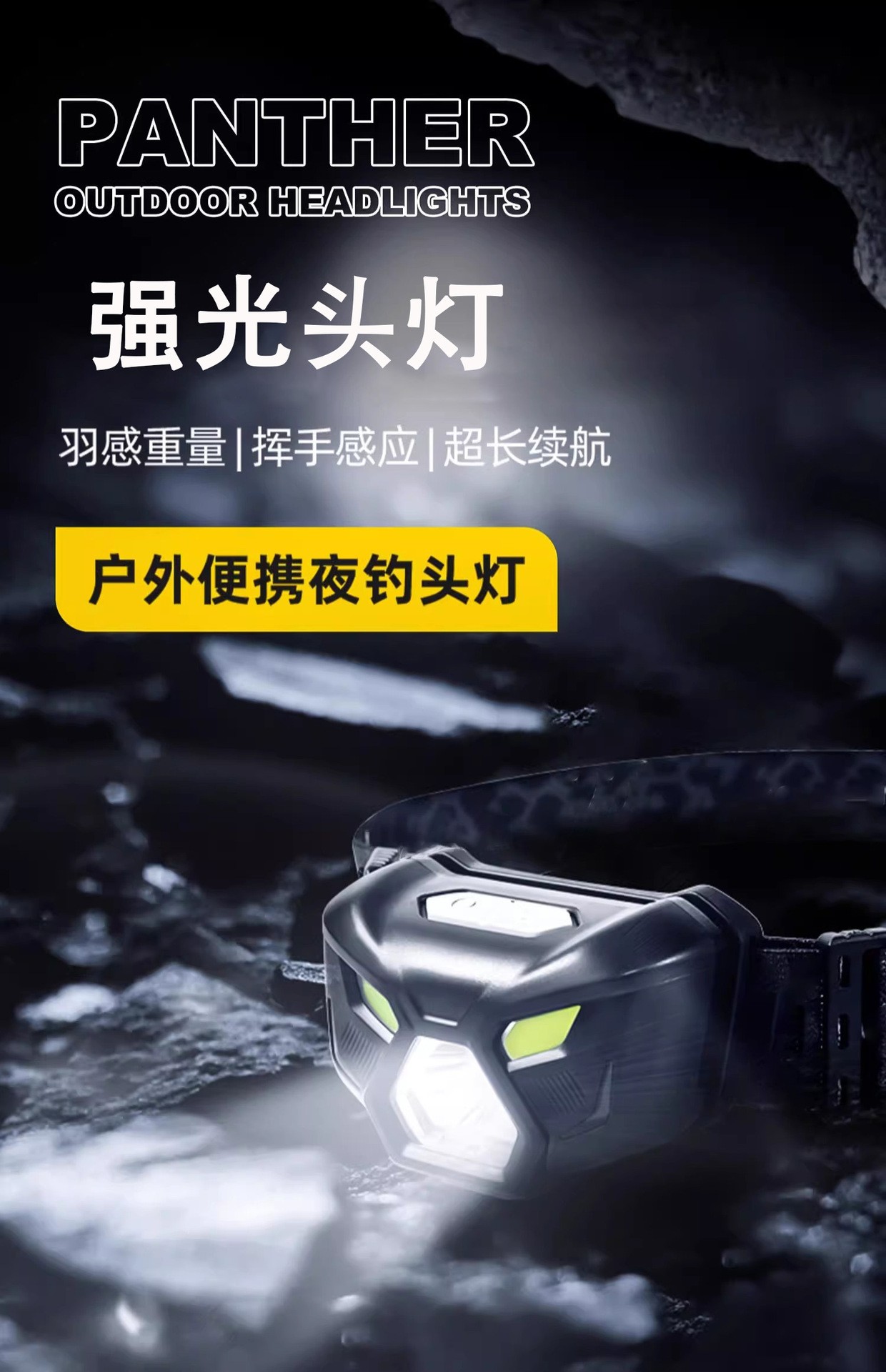 户外长续航锂电LED灯强光便携感应钓鱼灯可充电超亮头戴远射头
