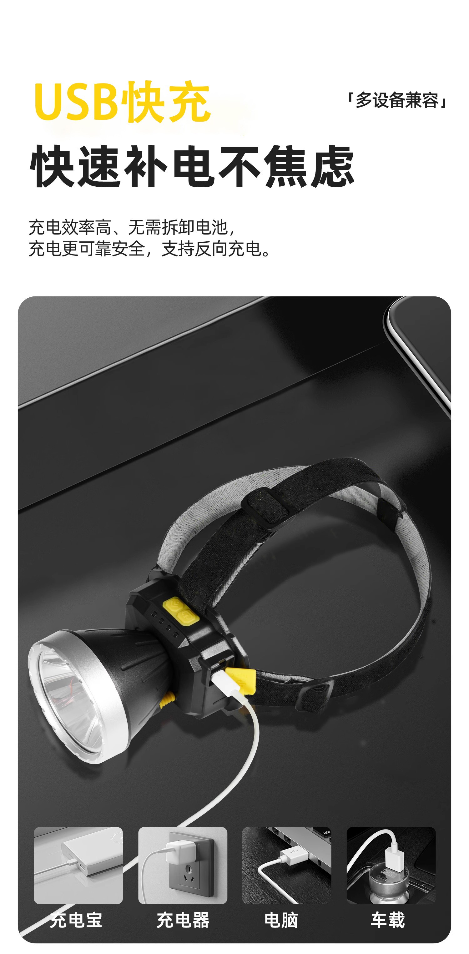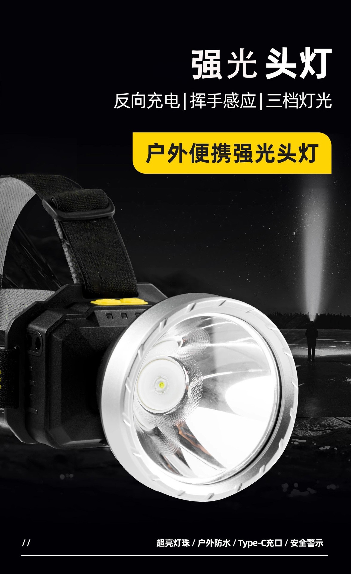 2024新款强光头灯充电超亮感应夜钓鱼专用超长续航头戴式矿灯