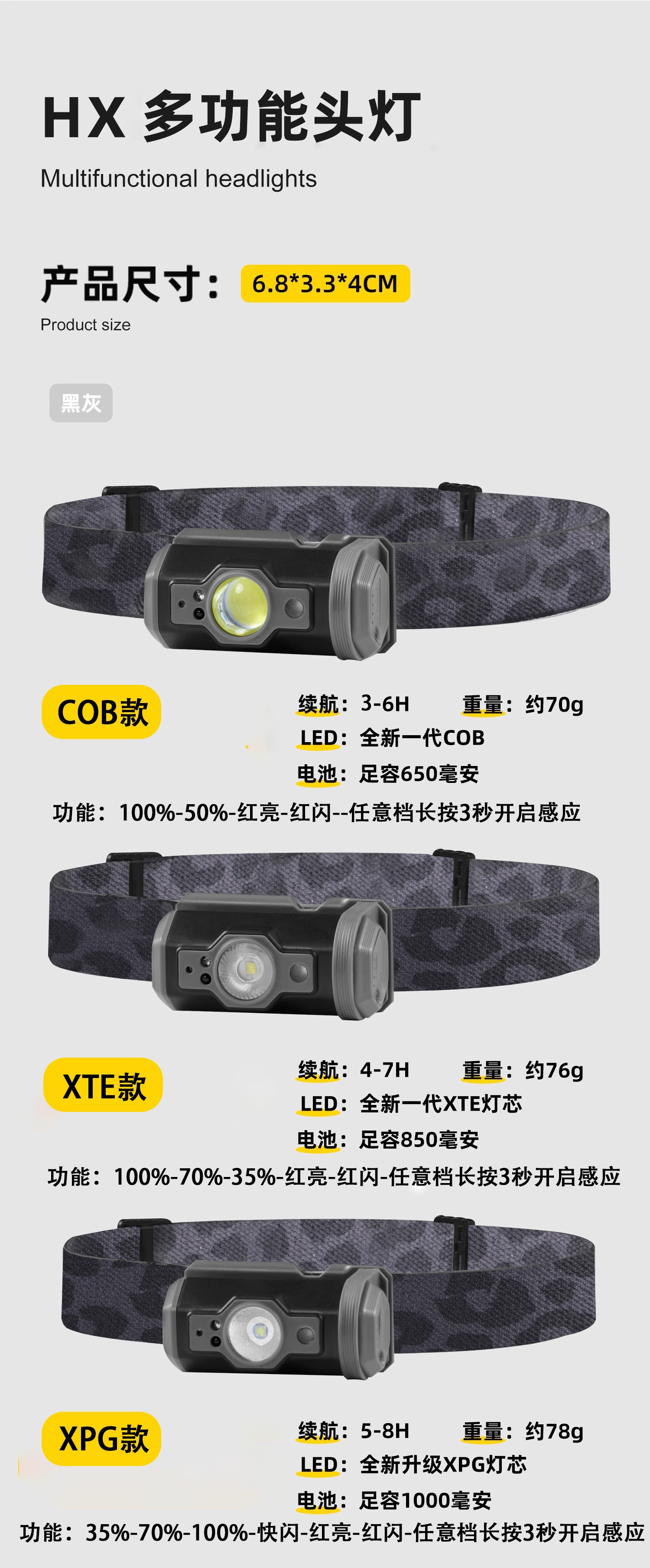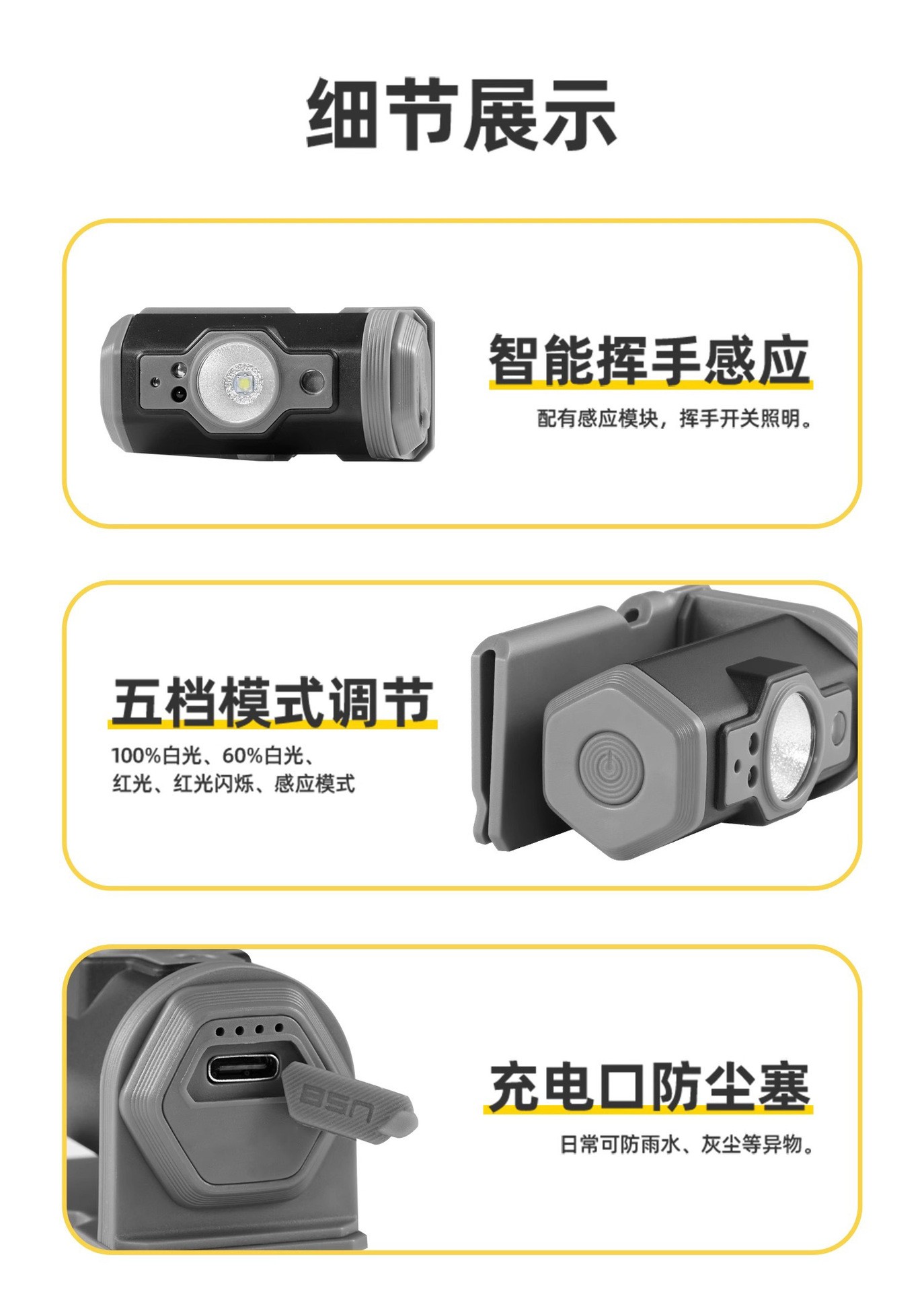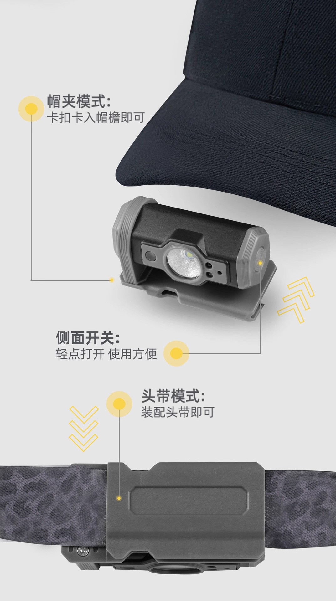 长续航锂电感应头灯LED钓鱼灯强光夜跑户外头灯多功能帽夹灯
