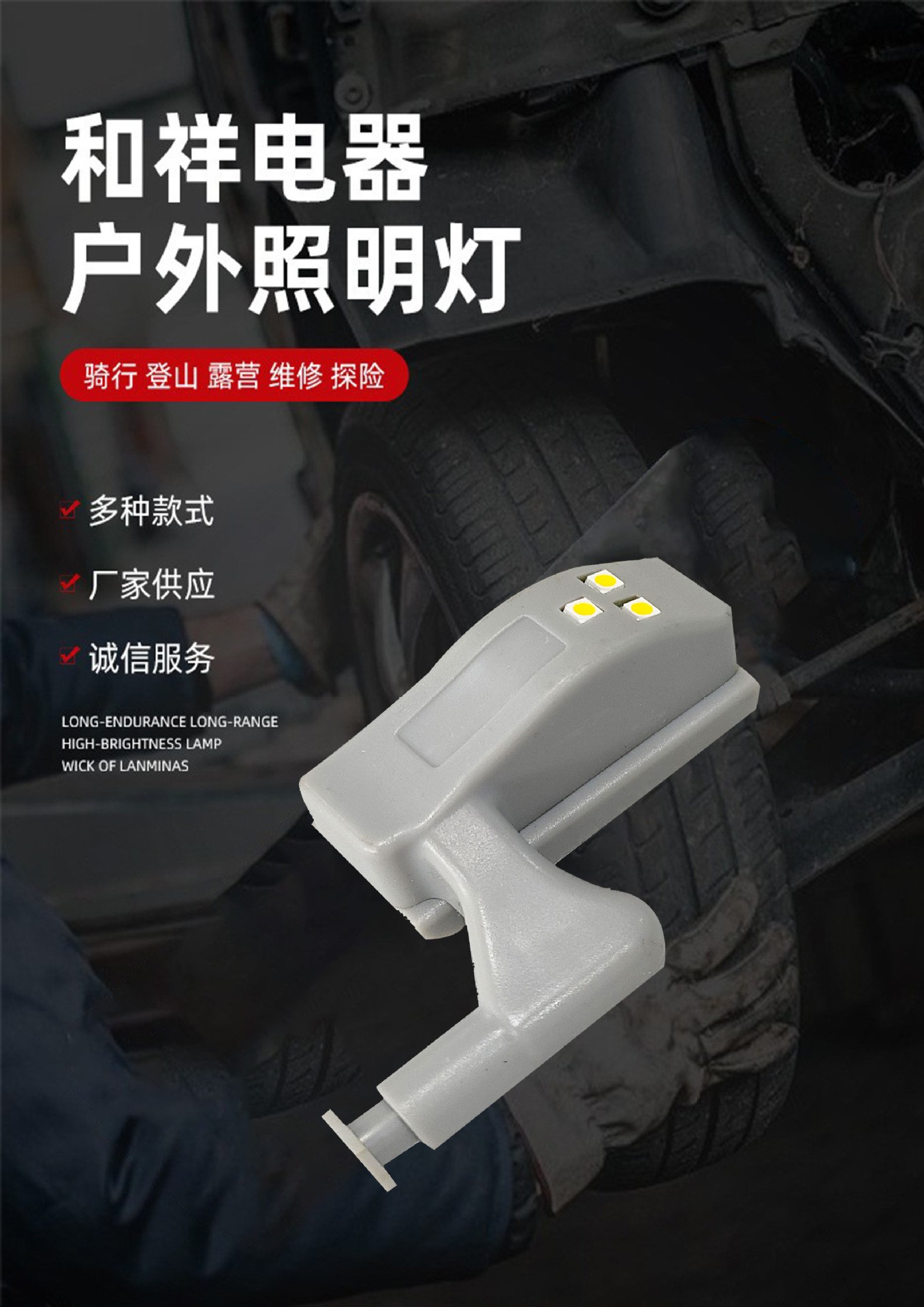宁海和祥电器有限公司于2008年09月18日创建,公司专注于LED照明产品的研发、生产和销售为一体的综合型公司。公司坐落在浙江省宁波市宁海县西店镇香石村后溪。 主营:LED工作灯,太阳能灯,头灯,野营灯,自行车灯等一系列产品且畅销全球各地。公司拥有先进的生产、检测、研发设备,并采用优质器材。筹建了一支高素质、专业化的研发团队和行业内的人才精英确保产品质量稳定,确保出厂的每一件产品,都具备高品质性能。为了更好的服务市场,公司已通过IS9001,BSC1.产品已全面通过CE、ROHS等相关检测认证。 公司在不断发展与追求,欢迎新老客户前来治谈合作,我们将一如既往地以良好的服务竭诚为您提供优良的产品且畅销全球各地。