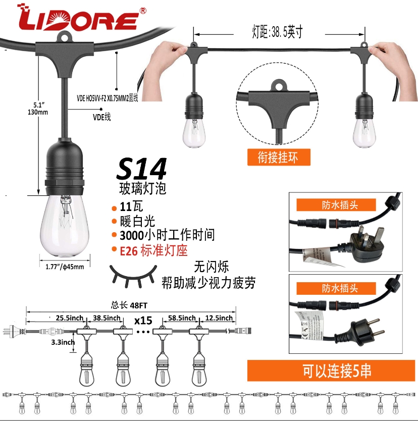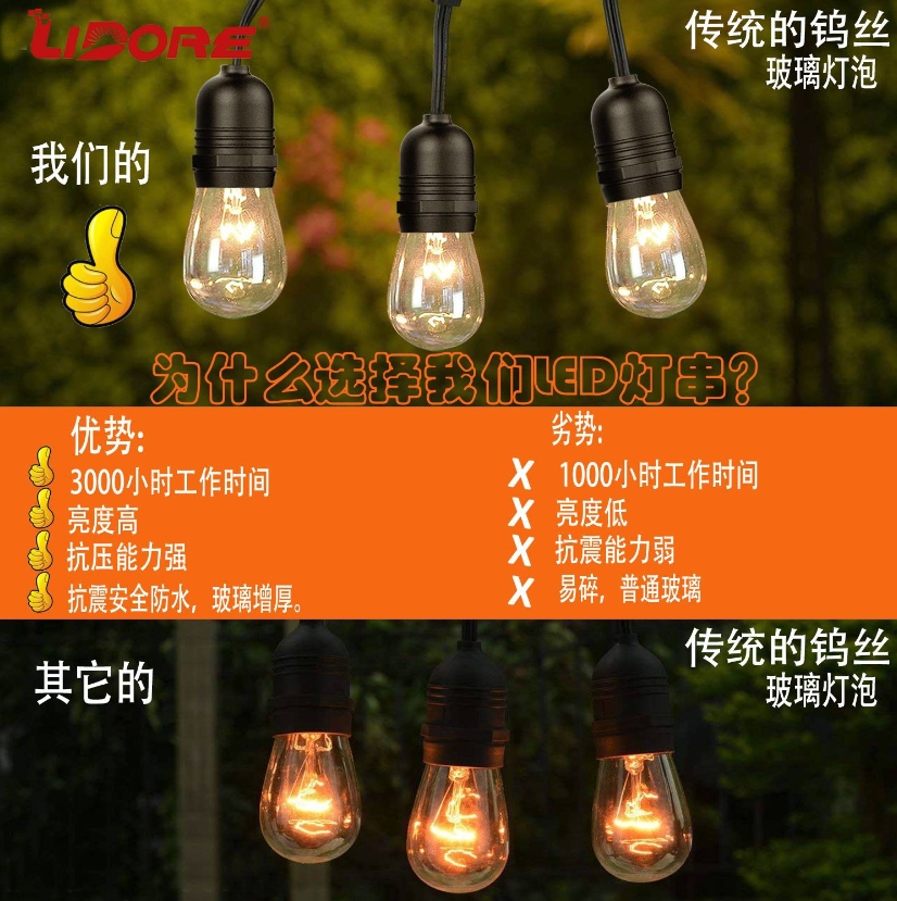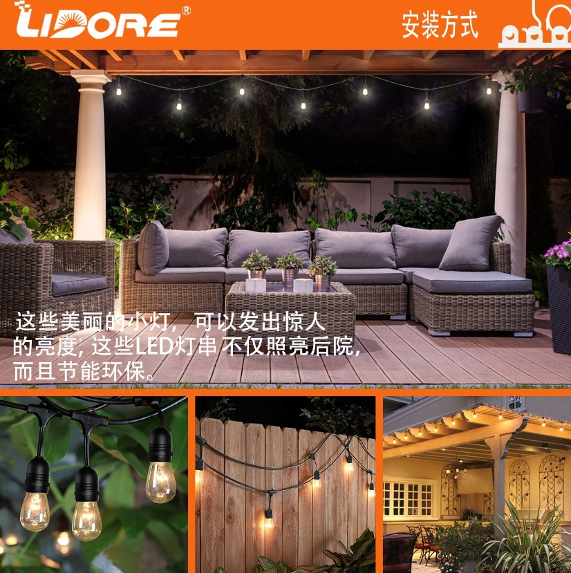 220V S14灯带 E27灯头跑马灯串节日户外防水气氛灯