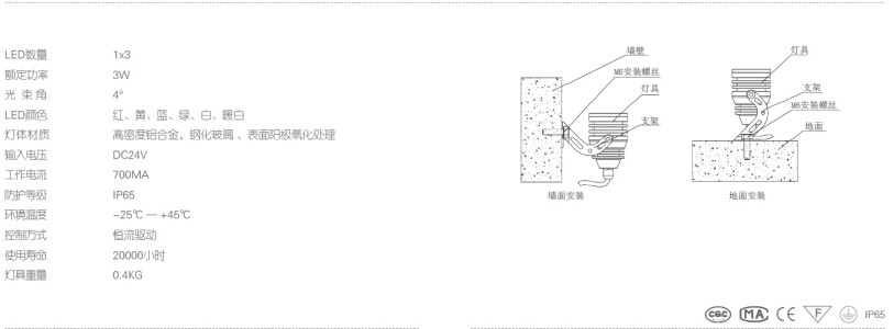 灯体材质:高密度压铸铝合金,钢化玻璃表面聚酯粉末喷涂