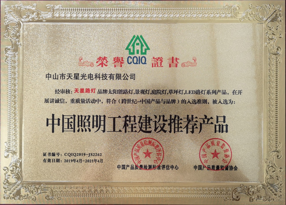 中山市天星光电科技有限公司是专业提供城市照明规划、城市景观照明规划与设计、建筑物外立面和环境照明规划与设计、照明智能控制和管理规划与设计的专业公司。专注户外非标景观灯灯具生产与专注户外亮化LED灯具生产,为城市环境照明规划与设计服务。中山市天星光电科技有限公司的主要产品有高杆升降灯、道路灯、不锈钢灯、景观灯、庭院灯、草坪灯、壁灯、埋地灯、泛光灯、投光灯、柱头灯、水底灯、椰树灯、仿植物灯、数码灯、护栏管灯、太阳能灯灯几十种路灯系列近万个产品品种,可全方位满足市场多元化需求。