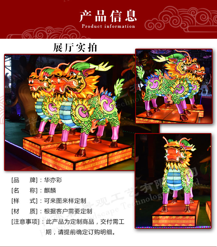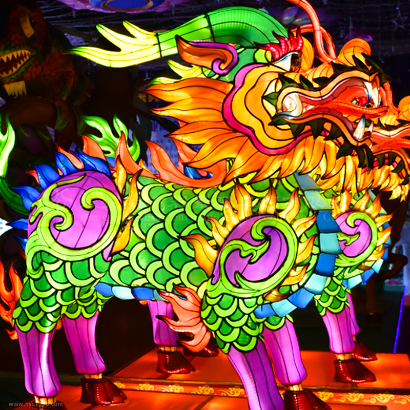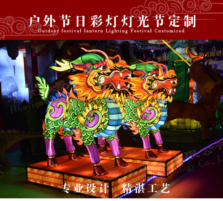 自贡华亦彩公司打造2021迎春花灯麒麟瑞兽彩灯厂家免费设计