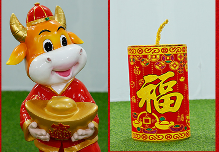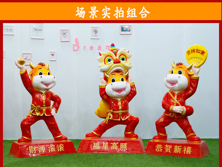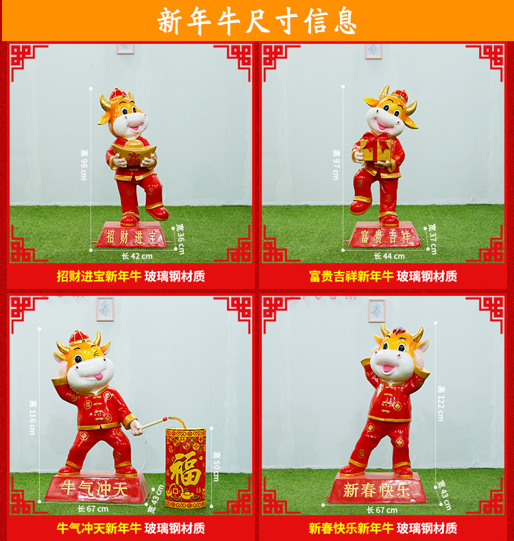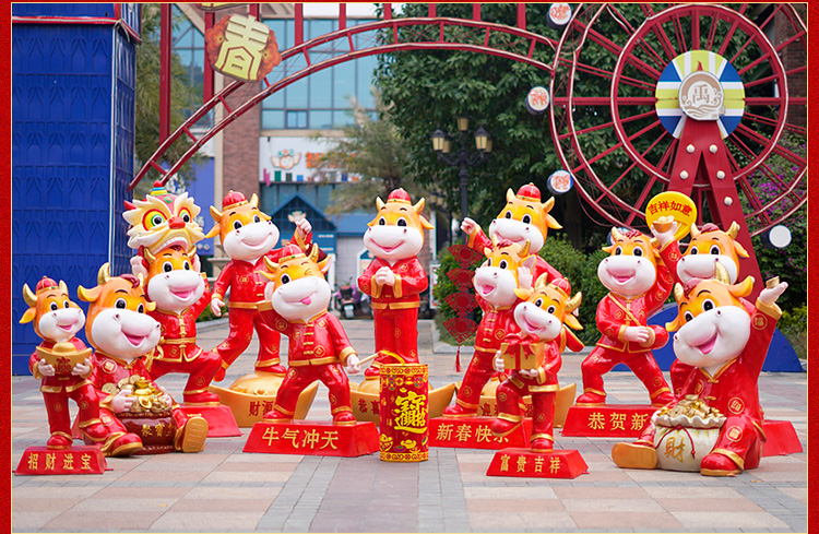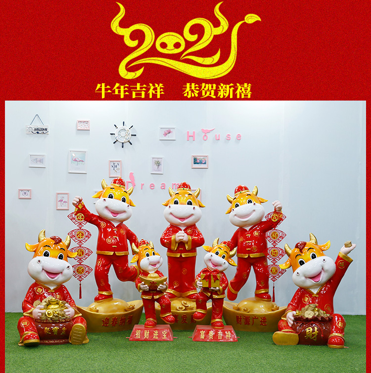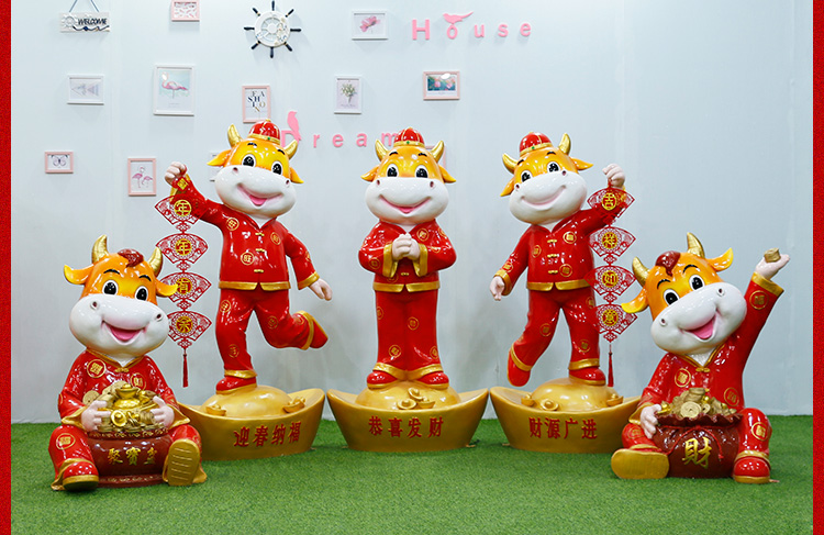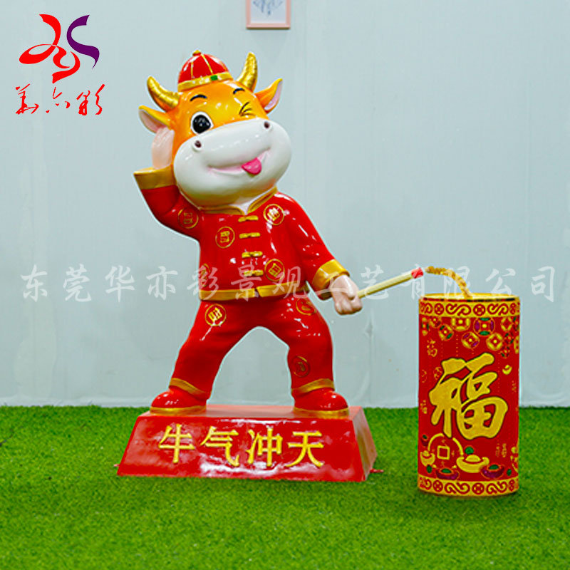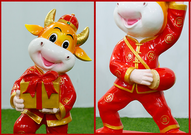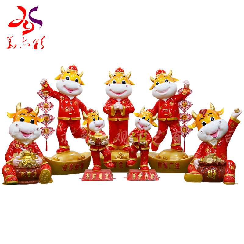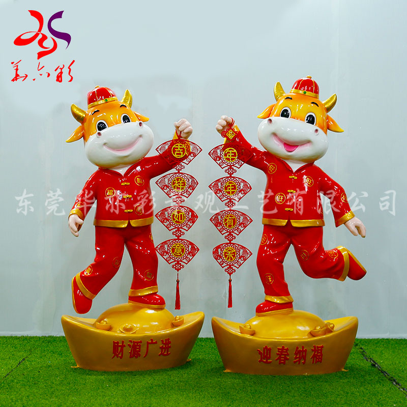 玻璃钢雕塑2021卡通牛造型厂家现货商场户外景区氛围点缀装饰
