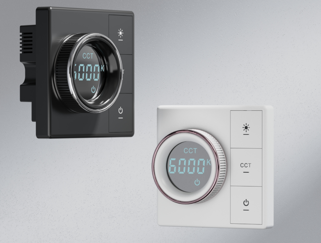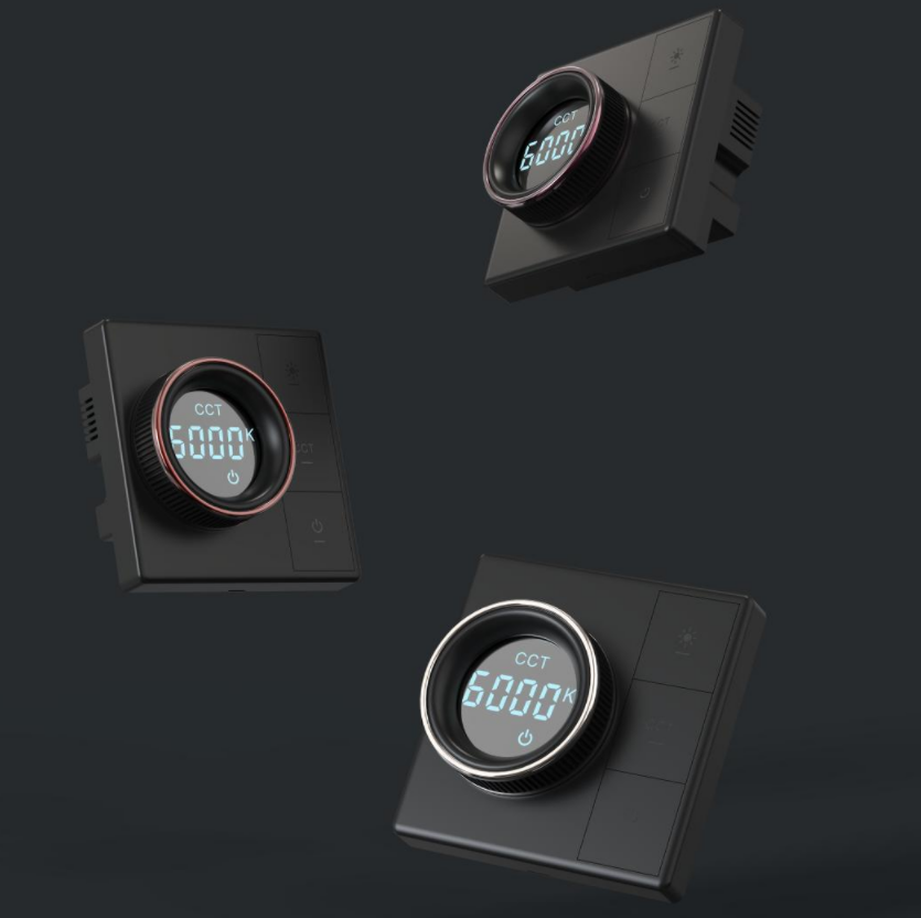 是一款性价比高的调光调色开关,外观设计采用旋钮屏幕显示+按键的布局方式,为用户带来更好的操控体验,同时为现代家居墙面带来轻智能科技感的装饰效果。