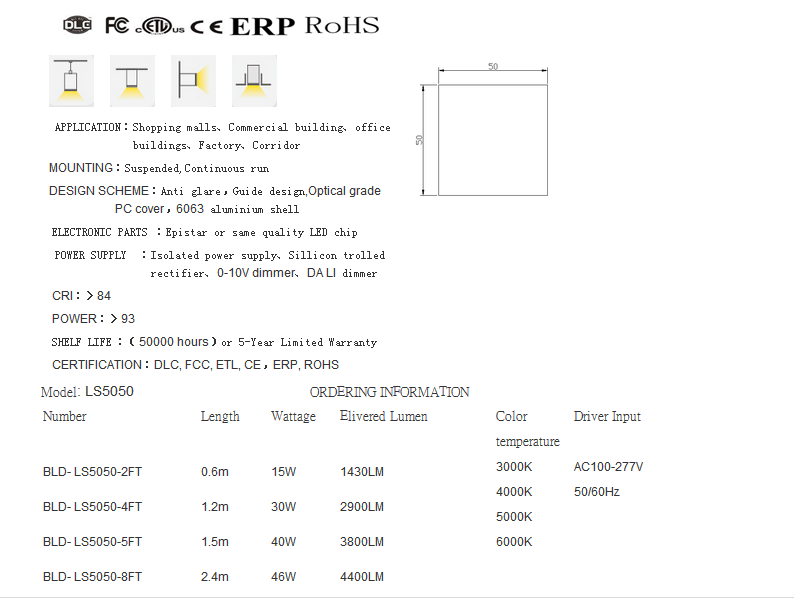 • 认证 DLC, ETL, ERP、CE、FCC、ROHS