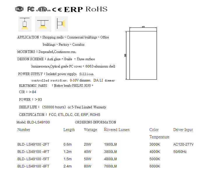 • 认证 DLC, ETL, ERP、CE、FCC、ROHS