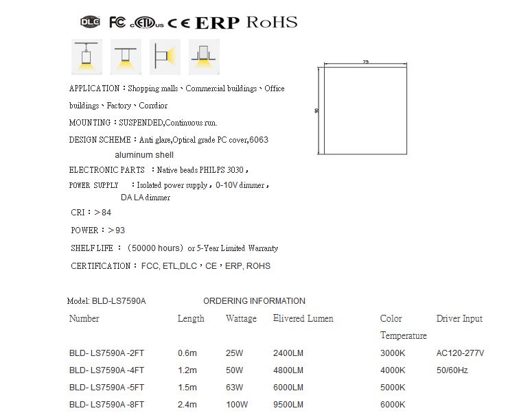 • 认证 DLC, ETL, ERP、CE、FCC、ROHS