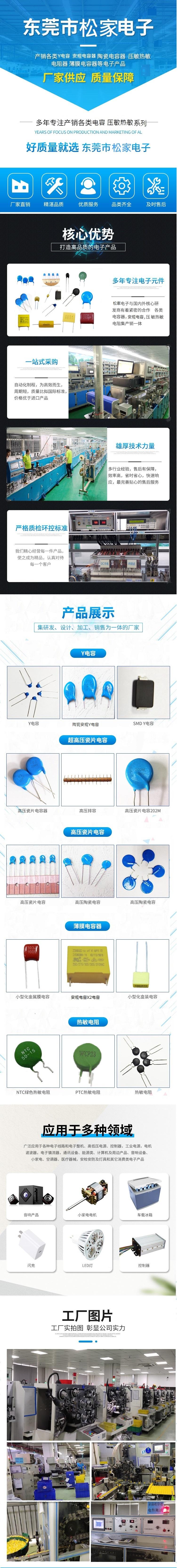 东莞市松家电子有限公司于2003年在东莞建厂,主要生产电容及电感. 总公司位于台湾成立于1982年,公司拥有自主品牌(ZONKAS)并申请注册商标专利。为适应市场需求,经过约三十年的多元化发展,分别于广东省东莞市,江苏省苏州市,江西省赣州市设立工厂及办公室.主要生产全系列中高压瓷片电容,独石电容,陶瓷安规Y电容(Y1,Y2电容),薄膜电容,X2电容及电感等产品。产品广泛应用于开关电源,LED电源,适配器,节能灯,音响,电机,电器等产品领域。东莞市松家电子有限公司拥有专业技术生产及销售管理团队。现代化的全自动綫电容器生产标准厂房约10000M2,工厂已通过ISO9901:2008质量管理体系及ISO14001:2004环境管理体系,公司安规电容器产品已获得德国VDE,韩国CK,美国UL,ENEC欧盟十七国及中国CQC等认证证书。所有产品均符合ROHS及REACH标准要求。