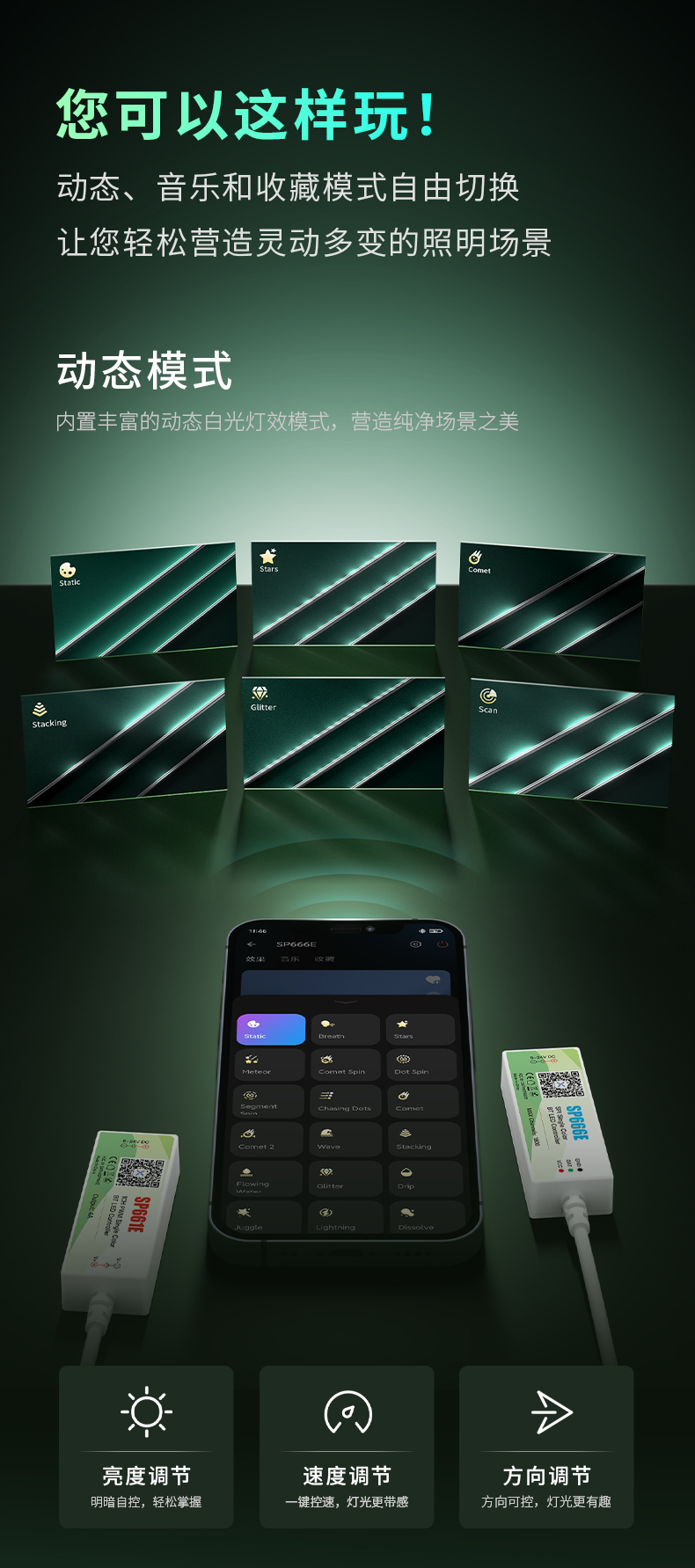 深圳市斯泊尔光电科技有限公司(以下简称“斯泊尔”)是一家集自主研发、销售、服务于一体的智能LED控制系统的专业型公司,是极具有创新力的LED灯光控制的方案提供商,多年来,斯泊尔开发的SP系列LED控制器以优良的质量,稳定的软件硬件结合,还有不断的创新,深受国内外客户的喜爱。斯泊尔为用户提供多样化的智能灯光解决方案。基于先进的无线RF,蓝牙,WiFi,IoT等技术,开发出了设计精良、性能卓越、更为智能的智能灯光控制系统,产品线覆盖了RF/IR遥控控制器,蓝牙控制器,WiFi控制器,还有实现了与阿里、小米、亚马逊、Google等物联网平台云对接的IoT控制器,智能ArtNet控制器等等...我们秉持“工匠”精神,通过提供性能卓越的智能硬件,和完整丰富的软件解决方案,帮助客户快速实现灯光产品智能化,正因如此,斯泊尔的产品越来越多客户的青睐,被广泛应用于智能家居、智能照明汽车灯光、消费电子等领域。