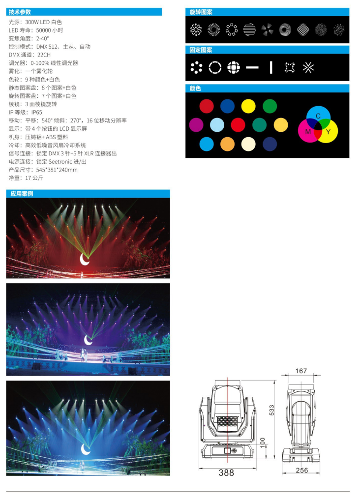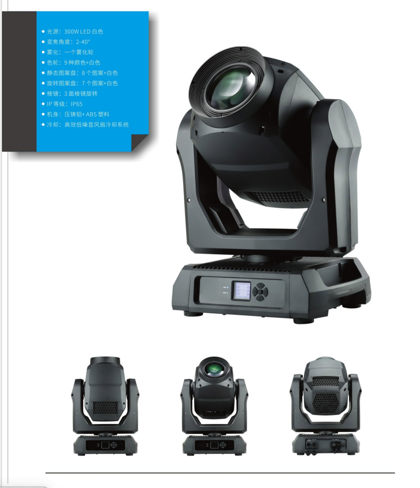 • 可调性 水平旋转、垂直俯仰、亮度调节、光束角调节
