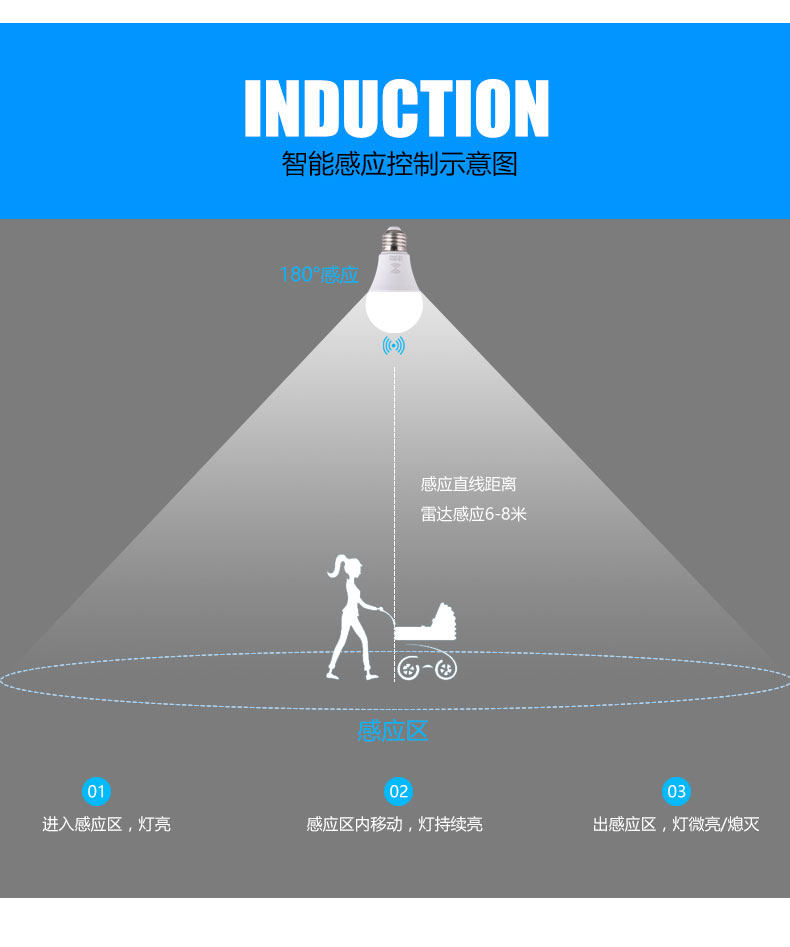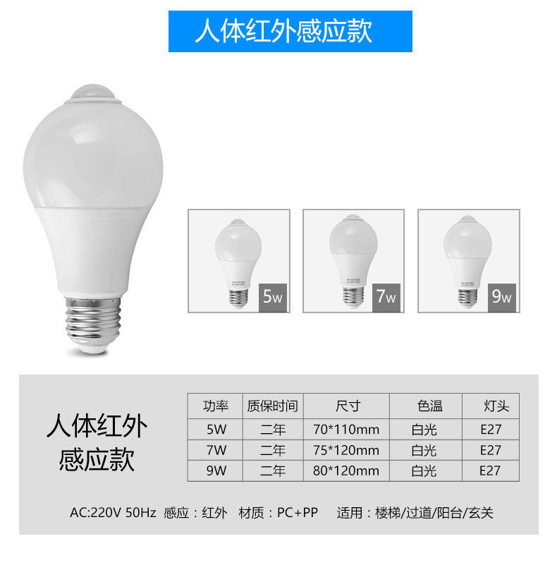 LED声光控雷达红外感应3W 5W 7W螺口E27楼道智能