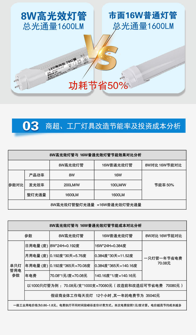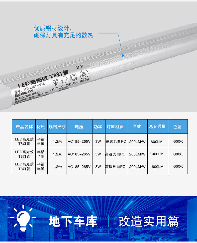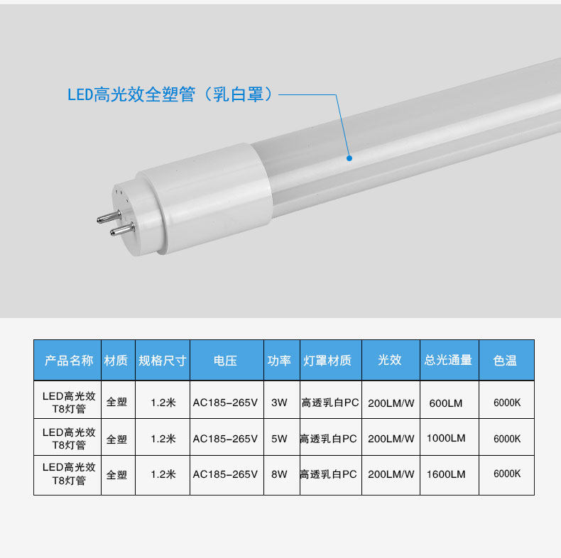 高光效高节能LED灯管 3W5W8W 商场办公改造