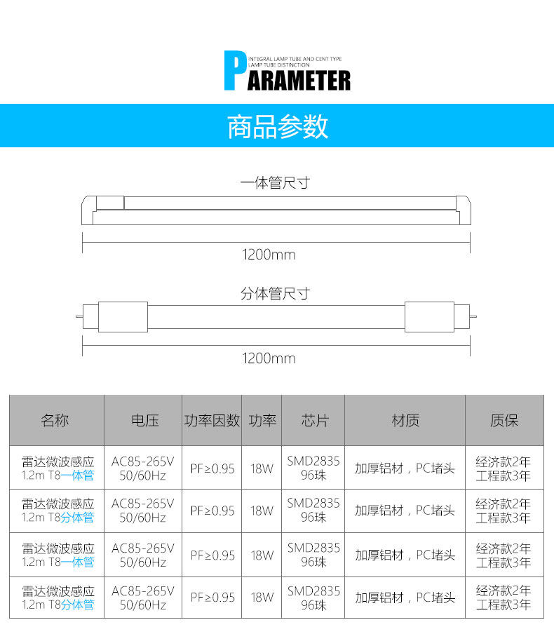 微波雷达T8感应灯管 人体感应红外灯管 LED感应日光灯管