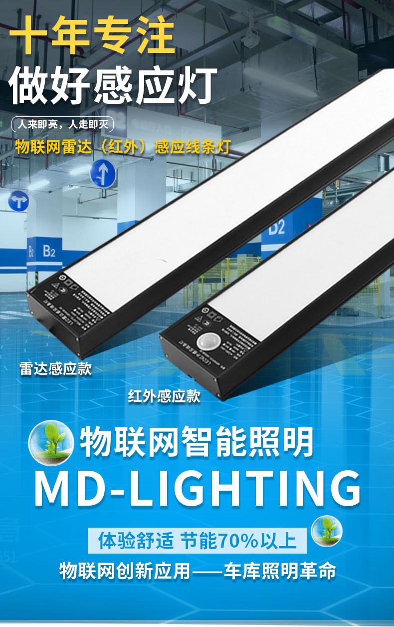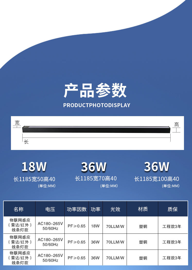 LED雷达人体感应红外物联网线条灯18W 36W 吸顶式吊装
