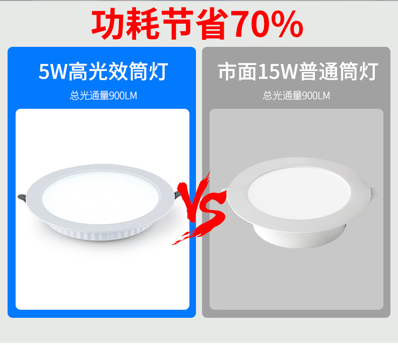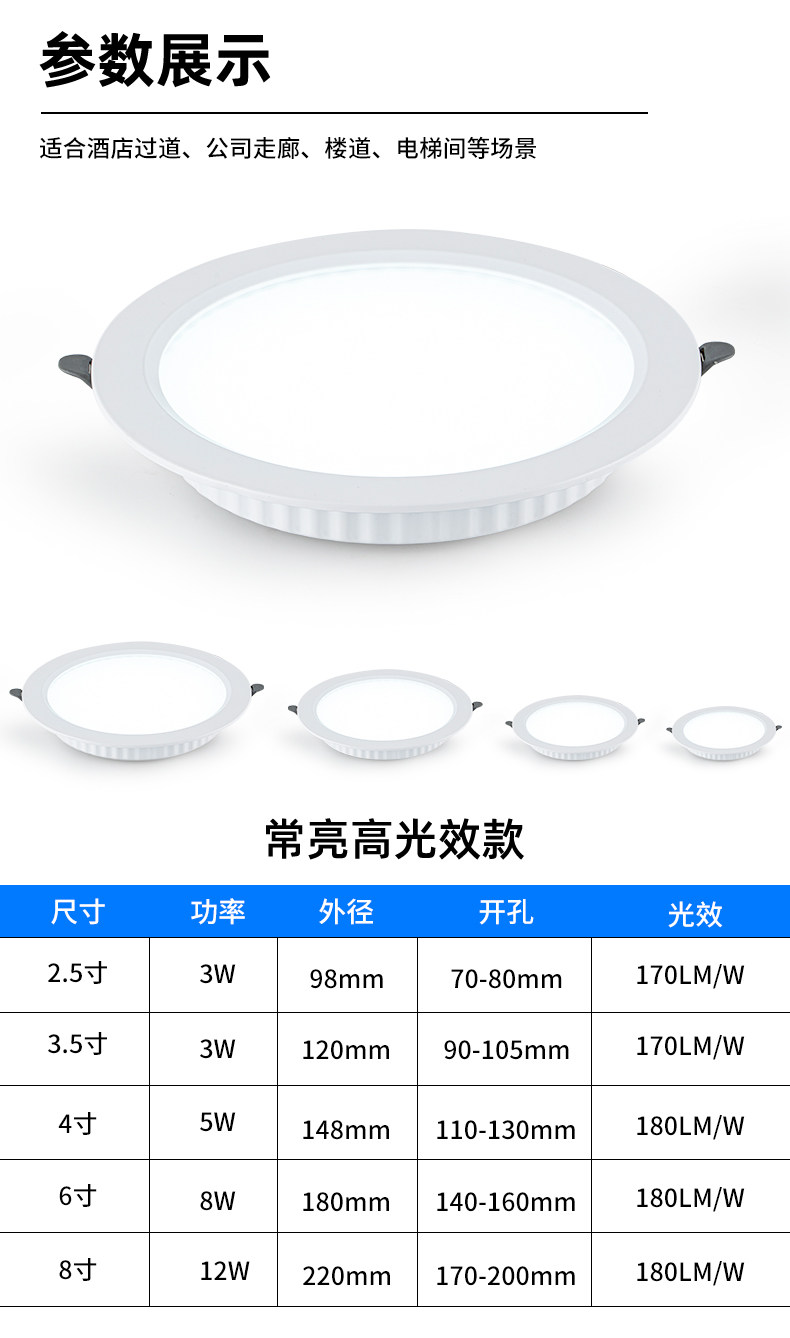 高光效高节能LED筒灯嵌入式孔灯酒店过道物业楼道EMC改造