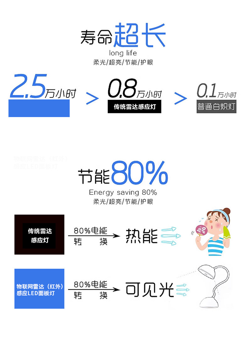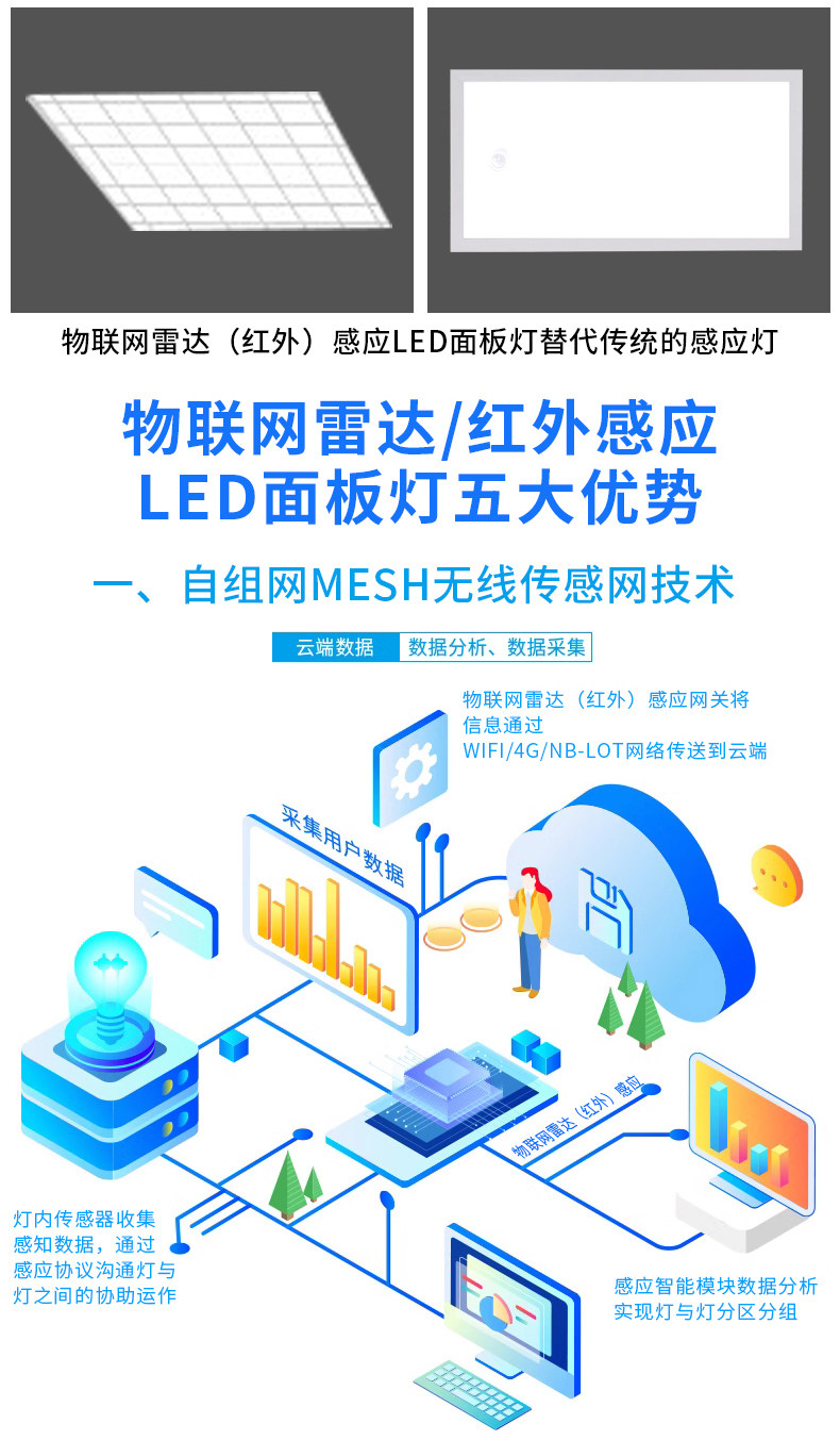 LED物联网平板灯过道、办公改造、会议大厅、嵌入明装改造感应