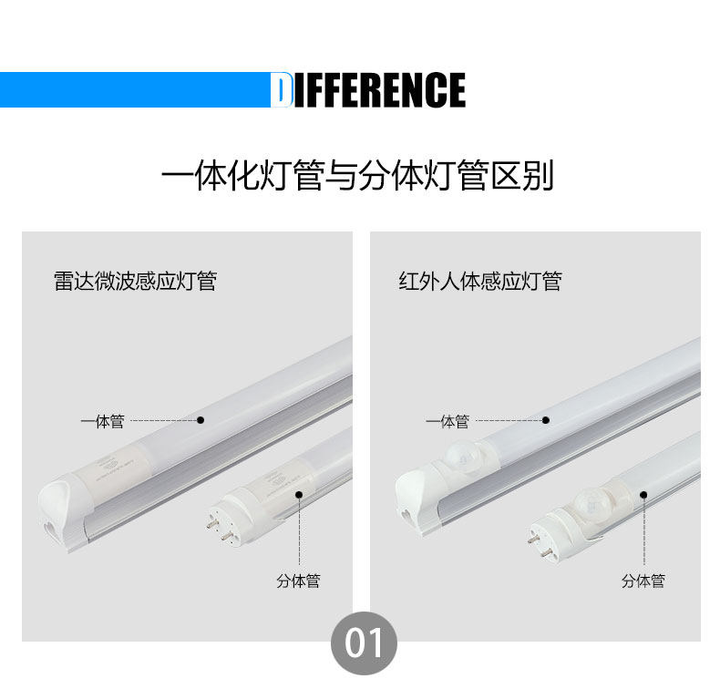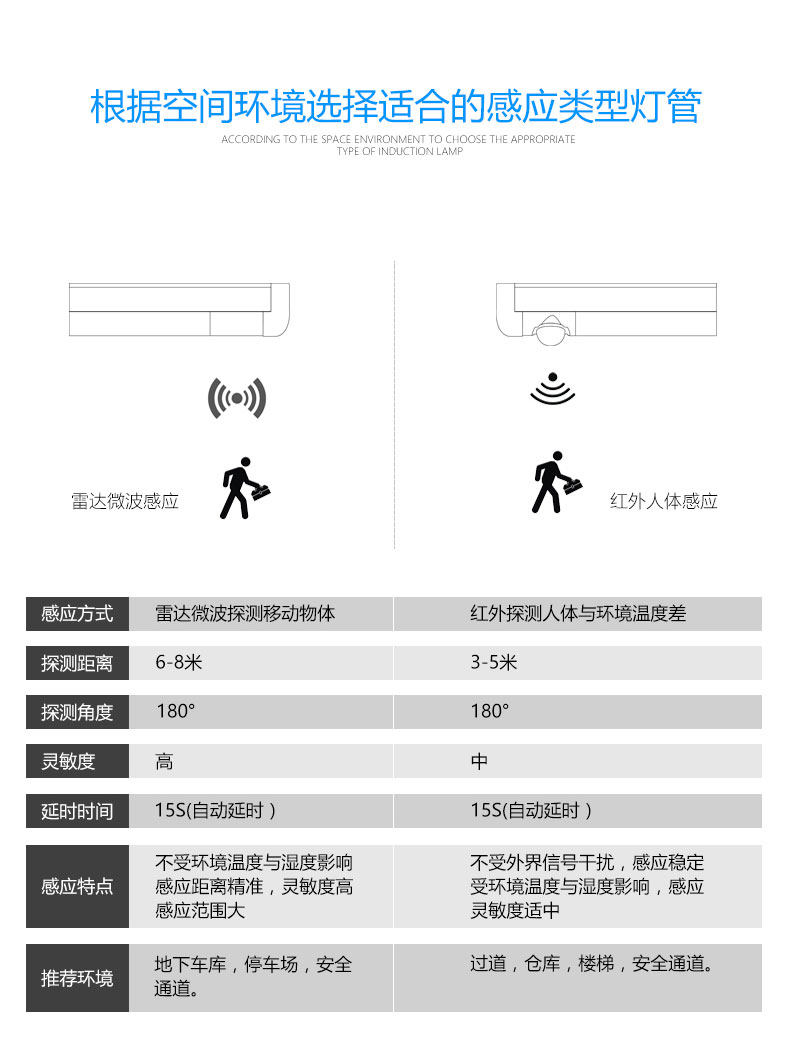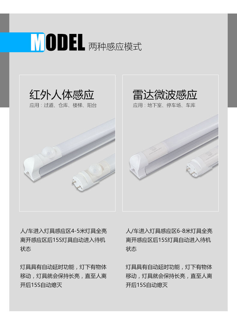 LED感应灯管T8地下车库感应灯一体式过道灯地库灯仓库感应灯
