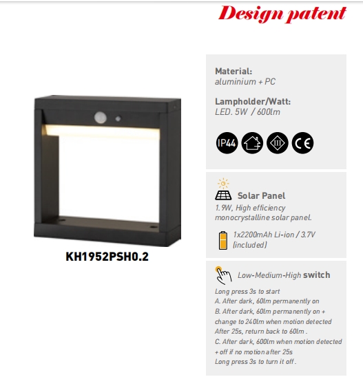 宁波康辉灯具有限公司坐落于风景优美的四明湖畔,十九个抗日根据地之一的梁弄镇,公司创建于2002年6月,专业制造各类户外灯具:具体为不锈钢灯具系列、铝合金灯具系列、LED灯具系列,产品涉及壁灯、地插灯、草坪灯、庭院灯的开发、经营为一体的企业,在国际市场上有一定的知名度。公司占地面积2.5万平方米,建筑面积3.5万平方米,员工300余人,具有年产200万套的自行设计各类灯具,目前产品400多个系列,1500多个品种。公司拥有强大的开发团队,先进的生产设备、先进的制造工艺、完善的检测设备,有完善的ISO9001质量保证体系,和一支高素质的员工队伍,产品获得德国TUV公司颁发的CE和GS国际质量安全认证证书,产品符合ROHS和PAHS等相关欧共体环保指令要求,2010年通过BSCI,公司历年来共获得141项专利,其中两项为实用型专利,是宁波专利示范企业。产品主要销往欧共体、南美洲、澳洲等国家和地区。部分产品已进入欧洲各大超市,公司本着;务实创新,诚信合作,品质优良,价格合理,交期准确,客户满意,的经营宗旨,不断满足客户的需求,欢迎新老客户光临惠顾。