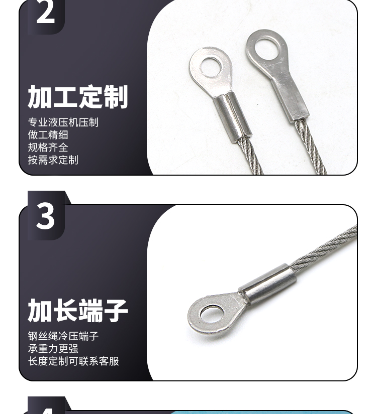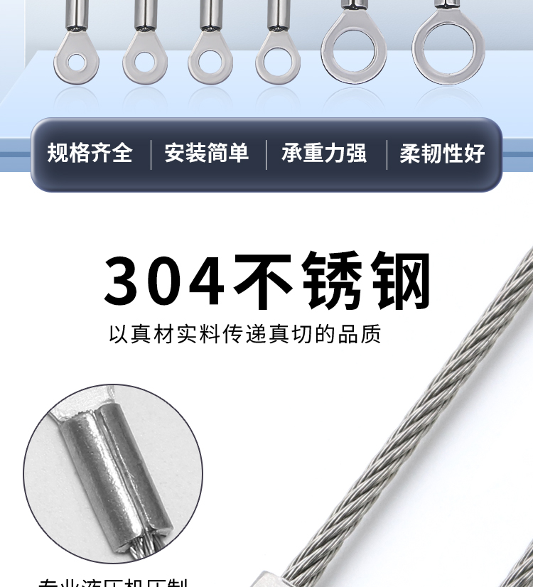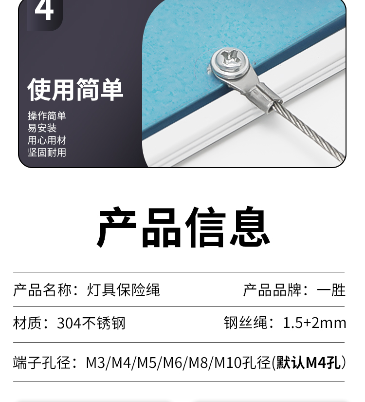 不锈钢眼式鱼眼端子安全防护绳承重钢丝保险绳设备灯具防坠落绳