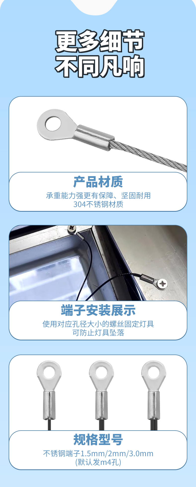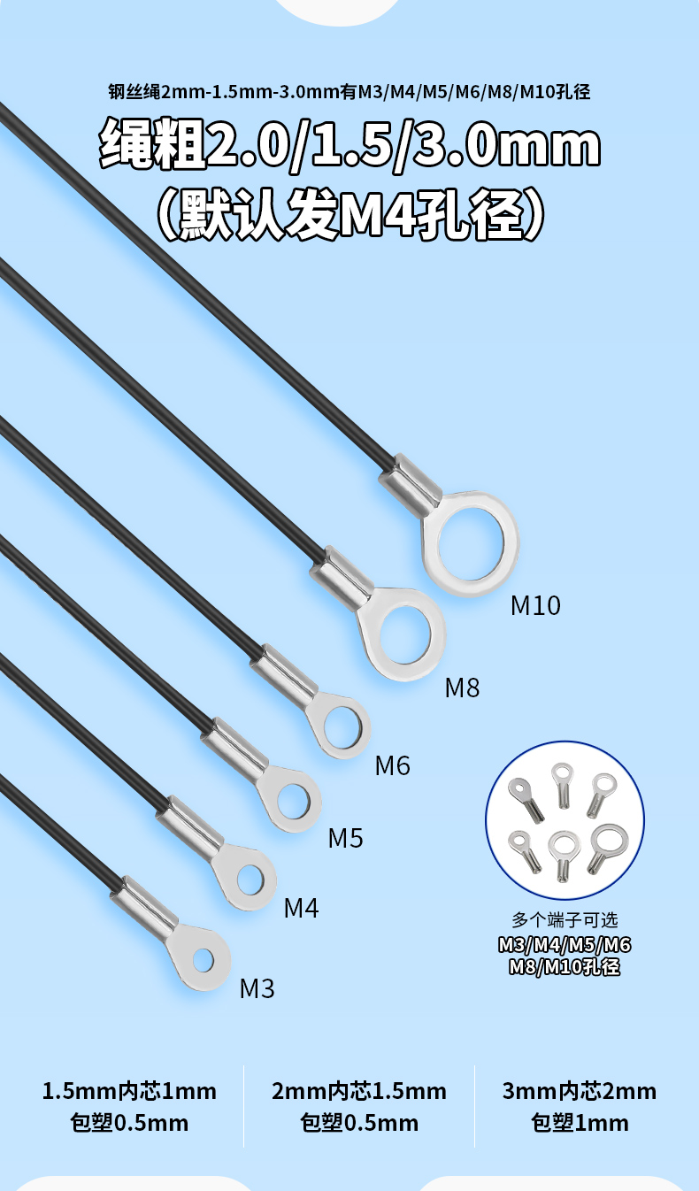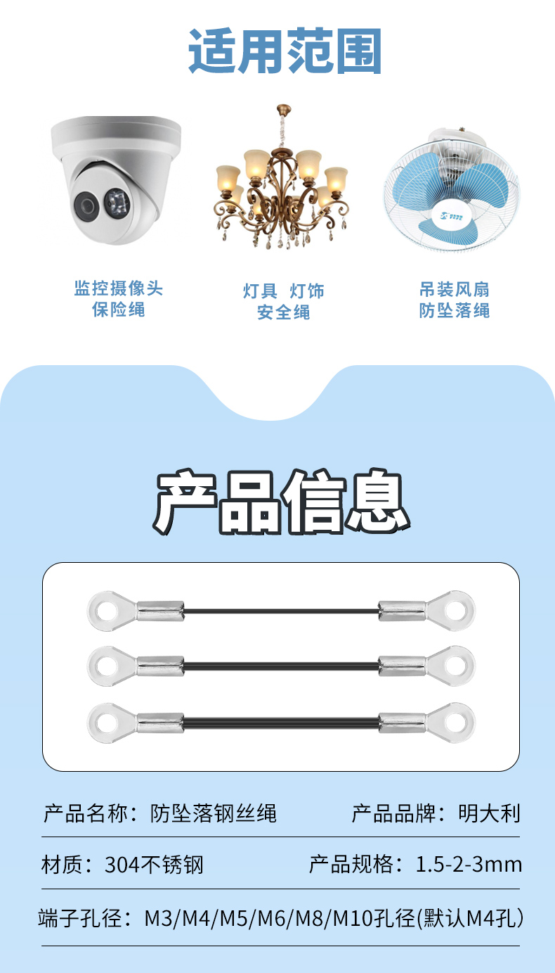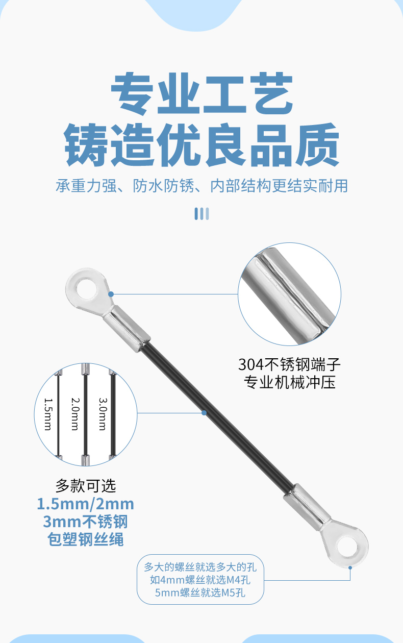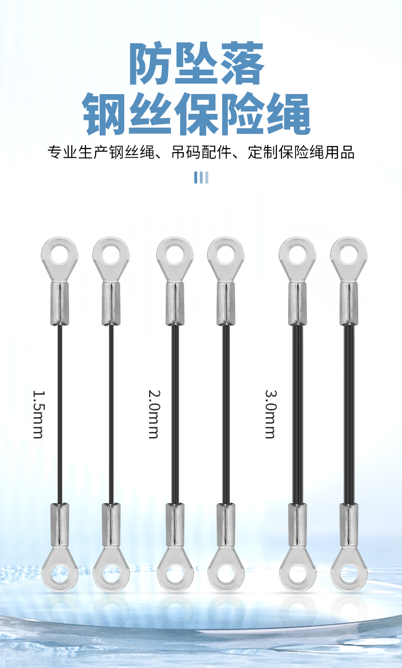 304不锈钢黑色包胶保险绳鱼眼端子灯饰钢丝吊绳防坠落拉绳限位
