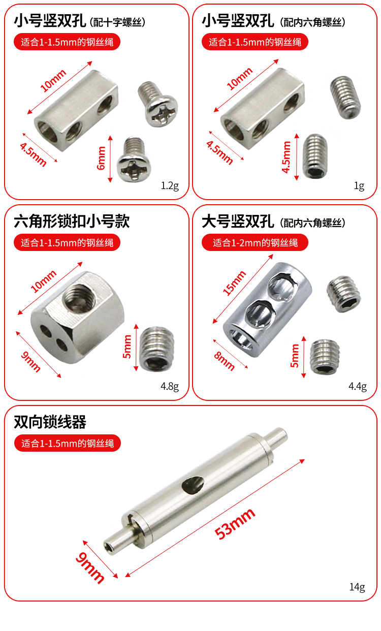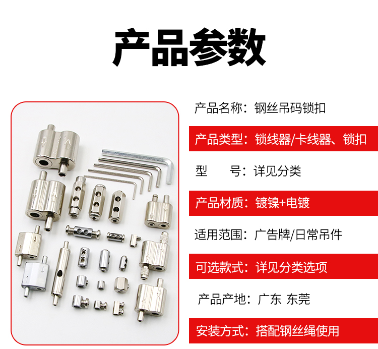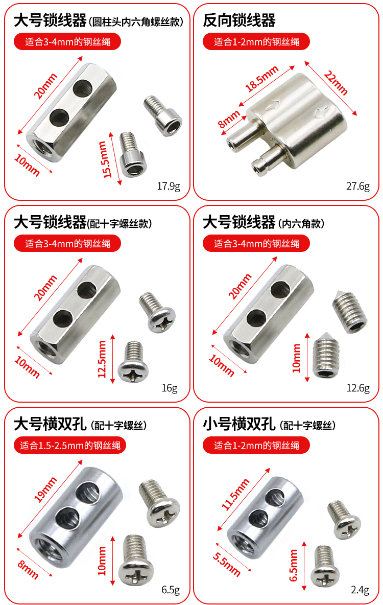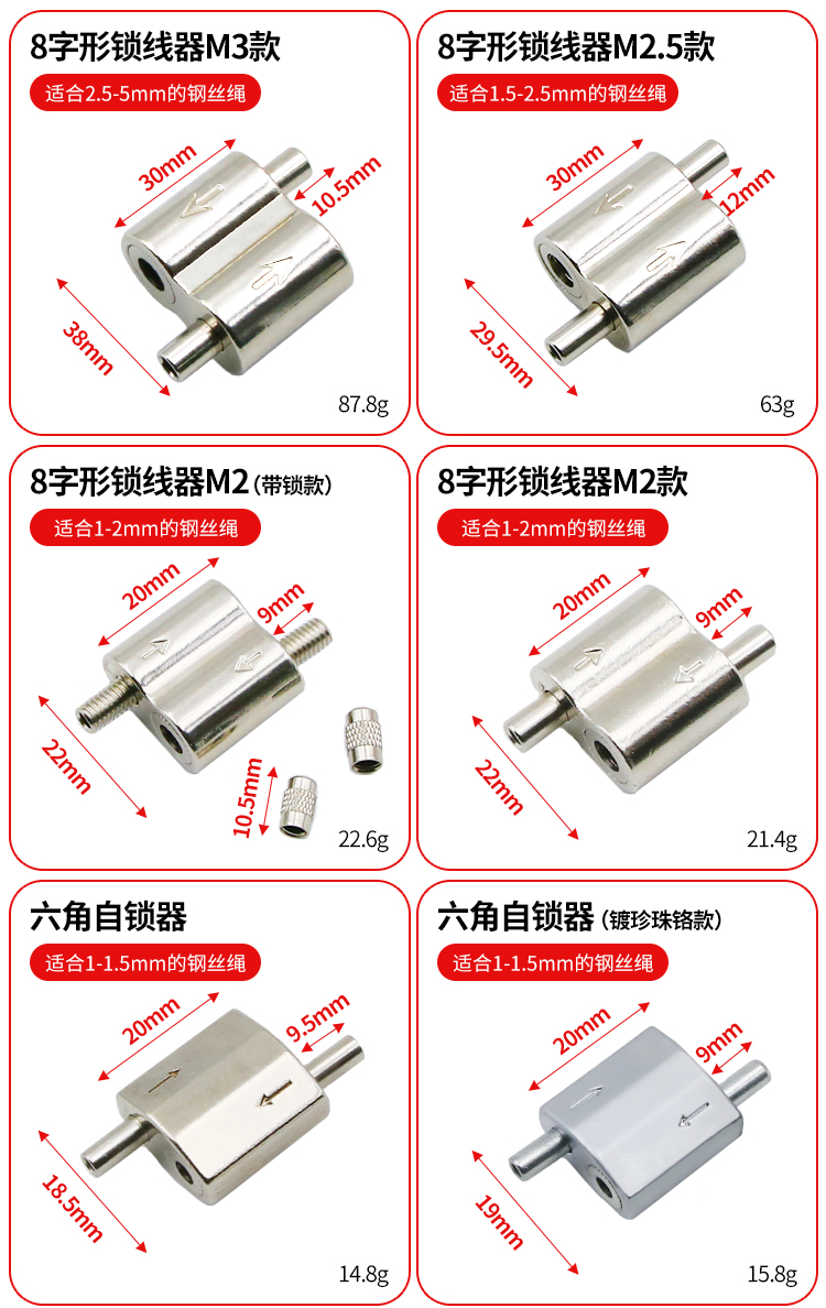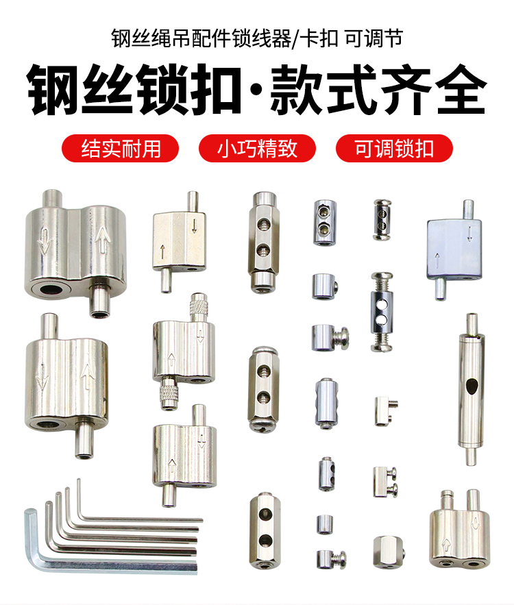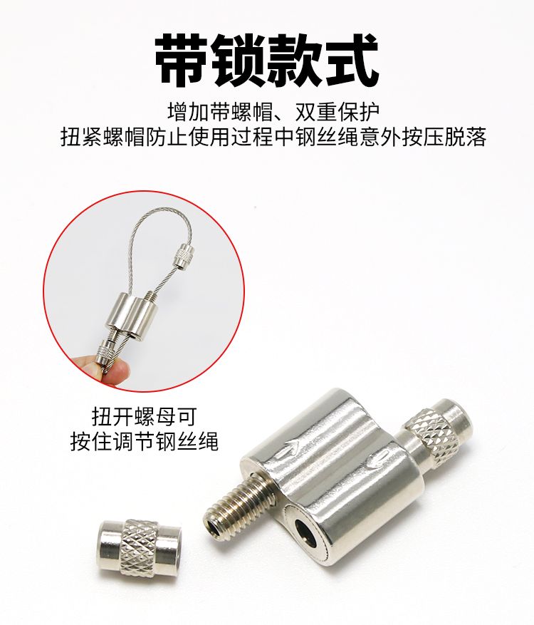 钢丝绳锁扣卡头夹头商品防盗链锁头钢丝绳吊码锁线器晾衣架绳配件