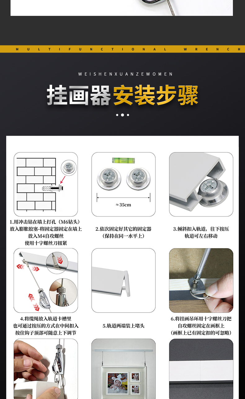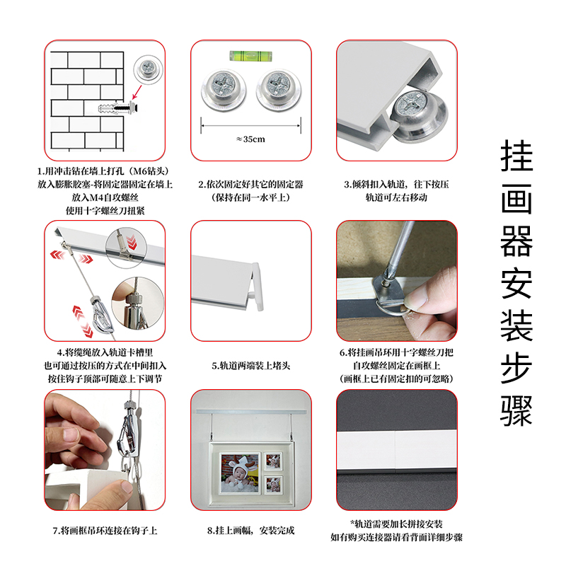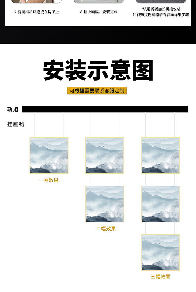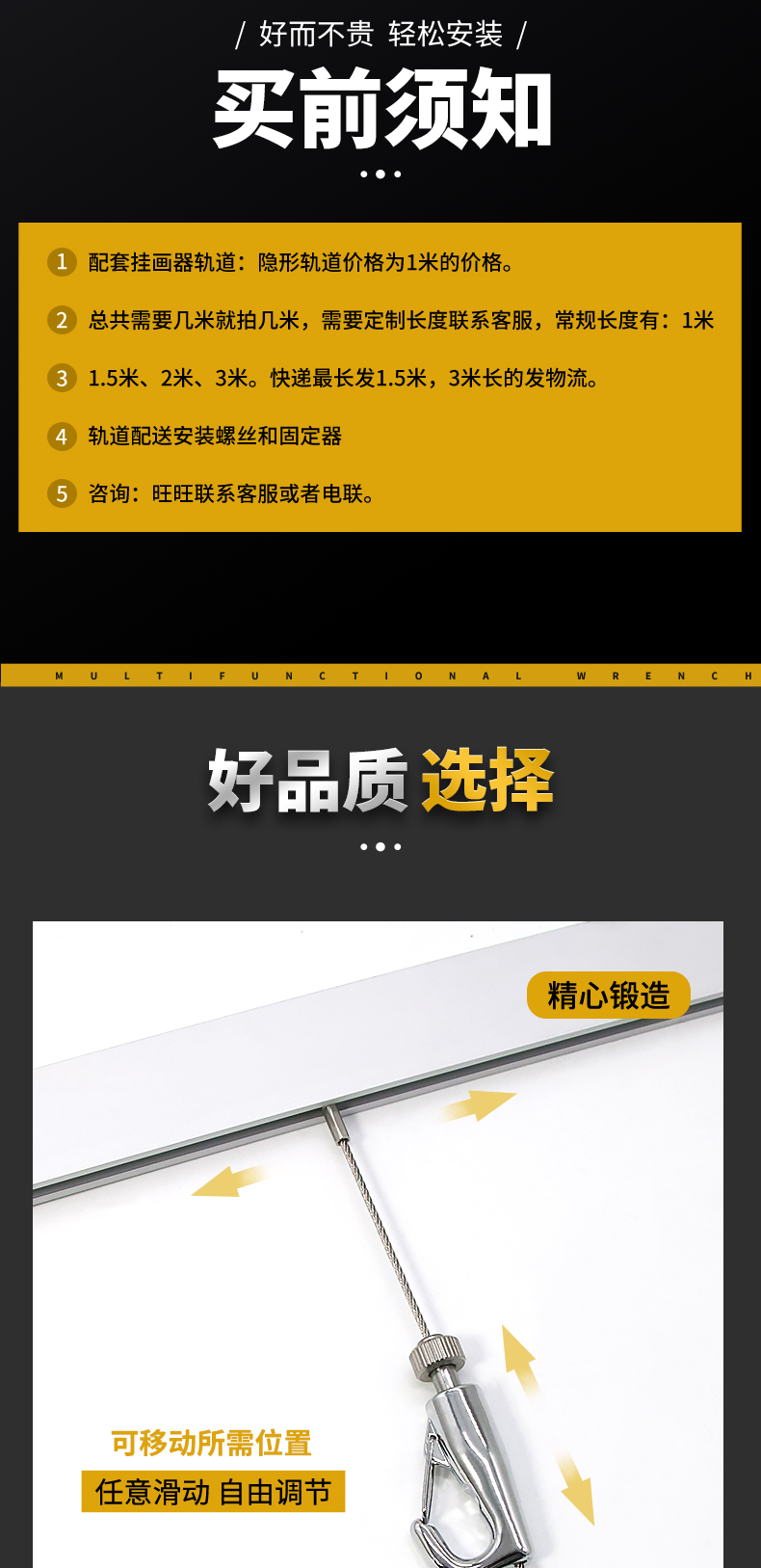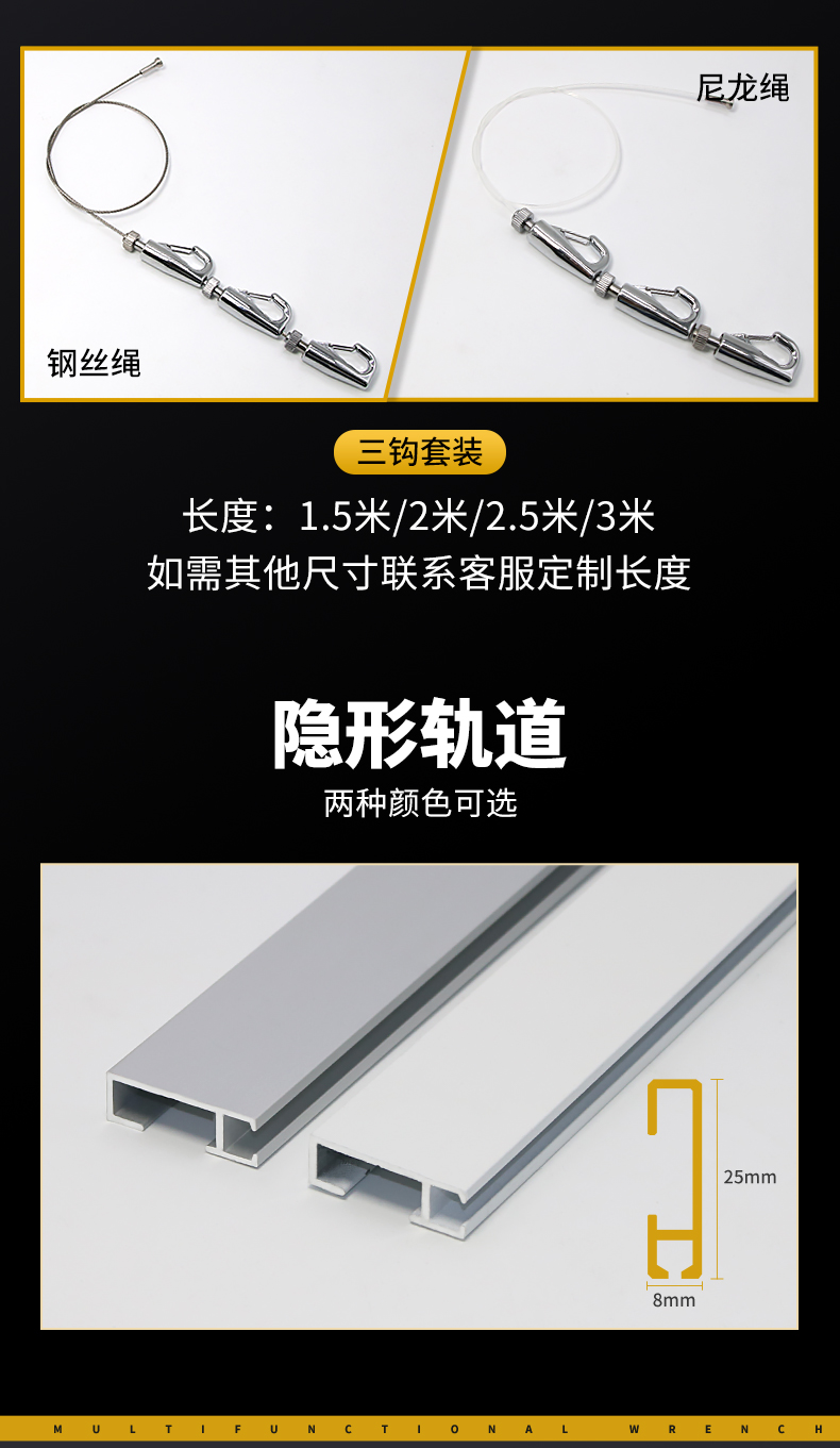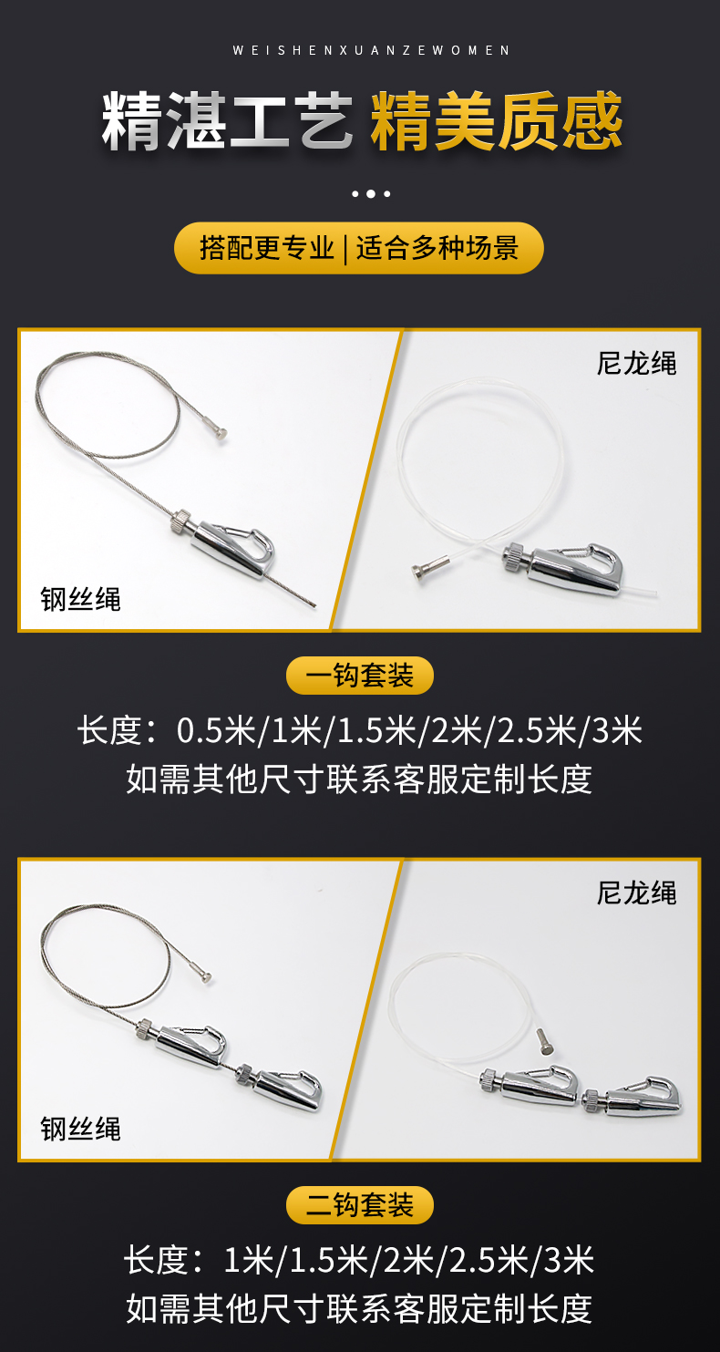 挂画器轨道可调节挂画绳挂画线挂镜线吊钩移动画轨画展画廊钢丝绳