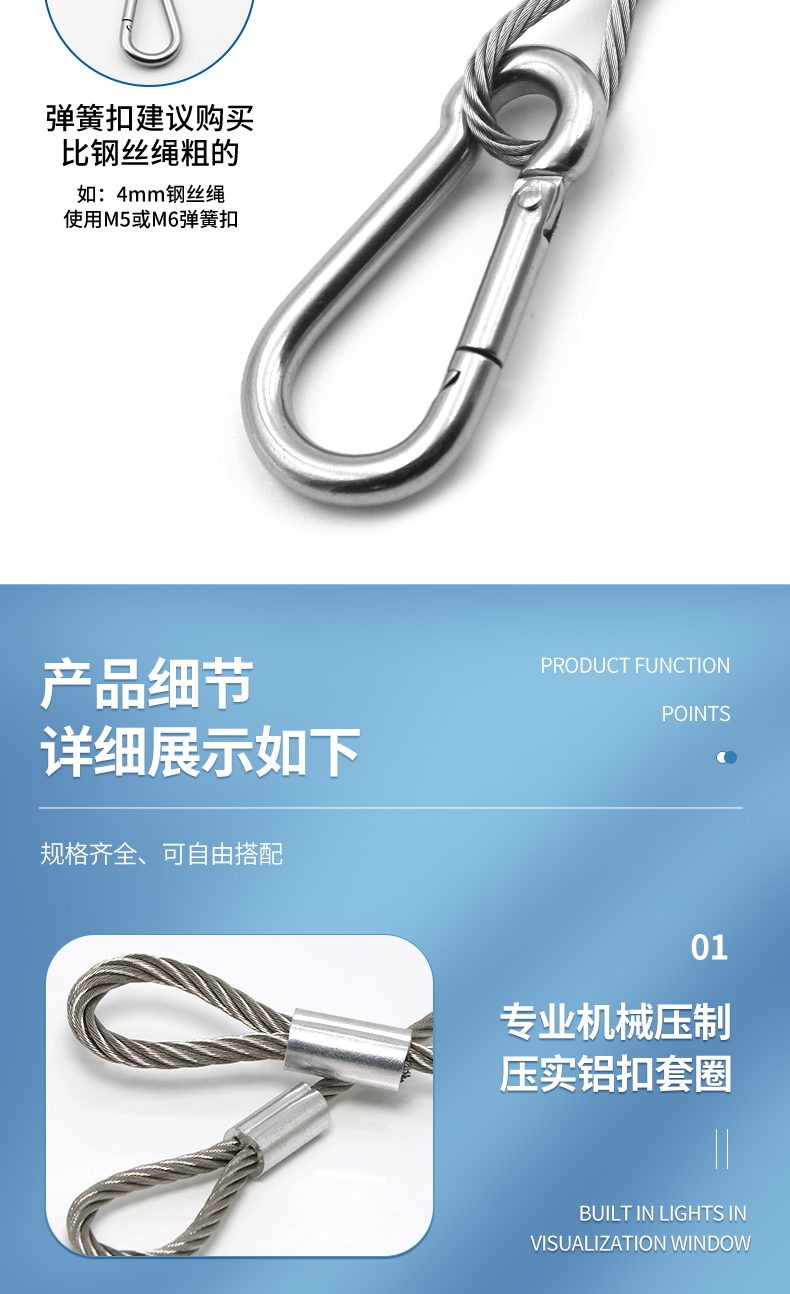 已压制铝套定做304不锈钢钢丝绳防盗钢丝锁机器拉绳安全吊绳定