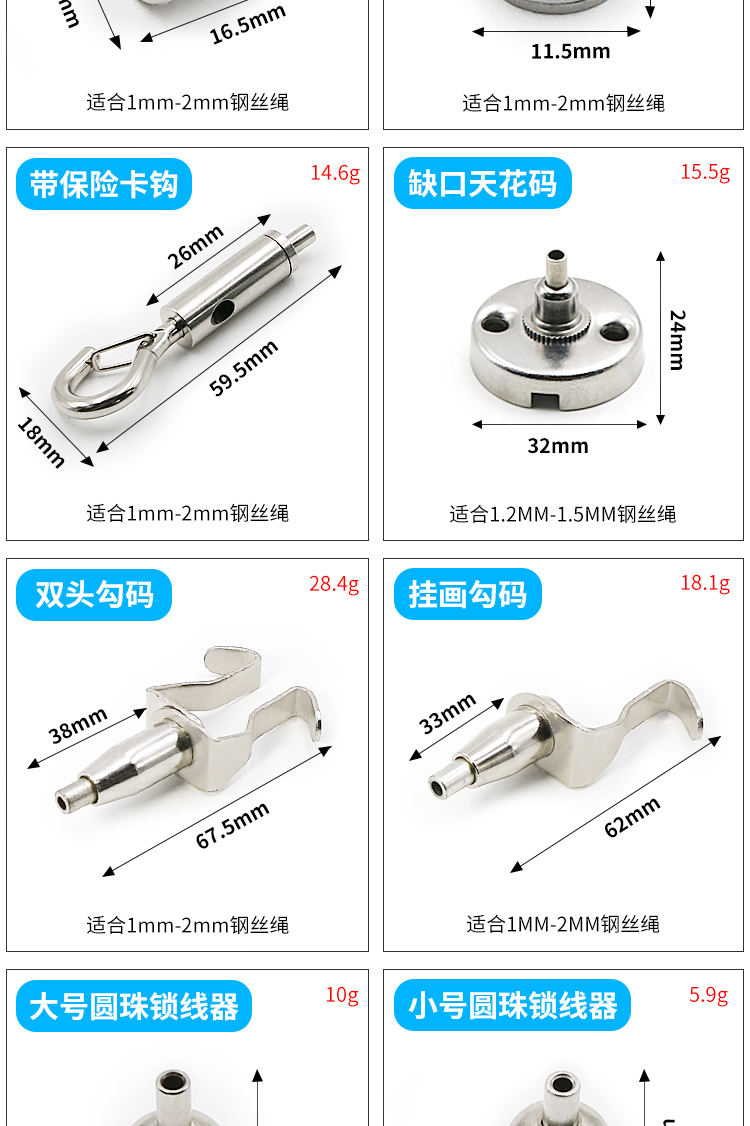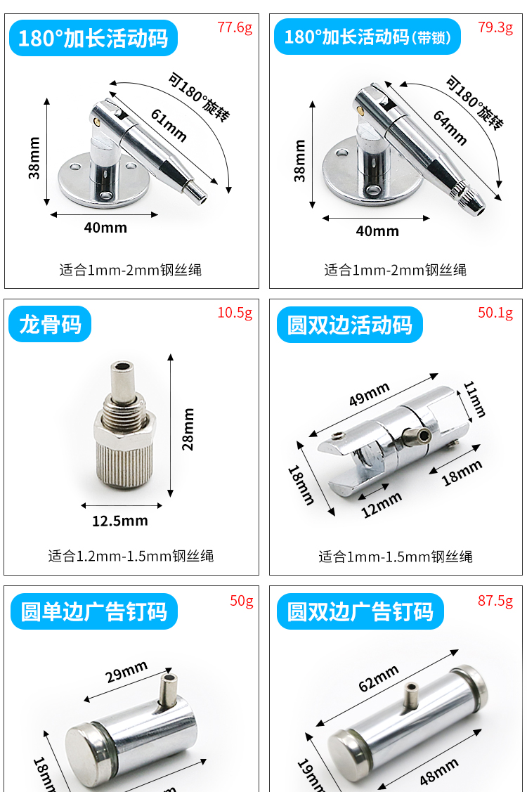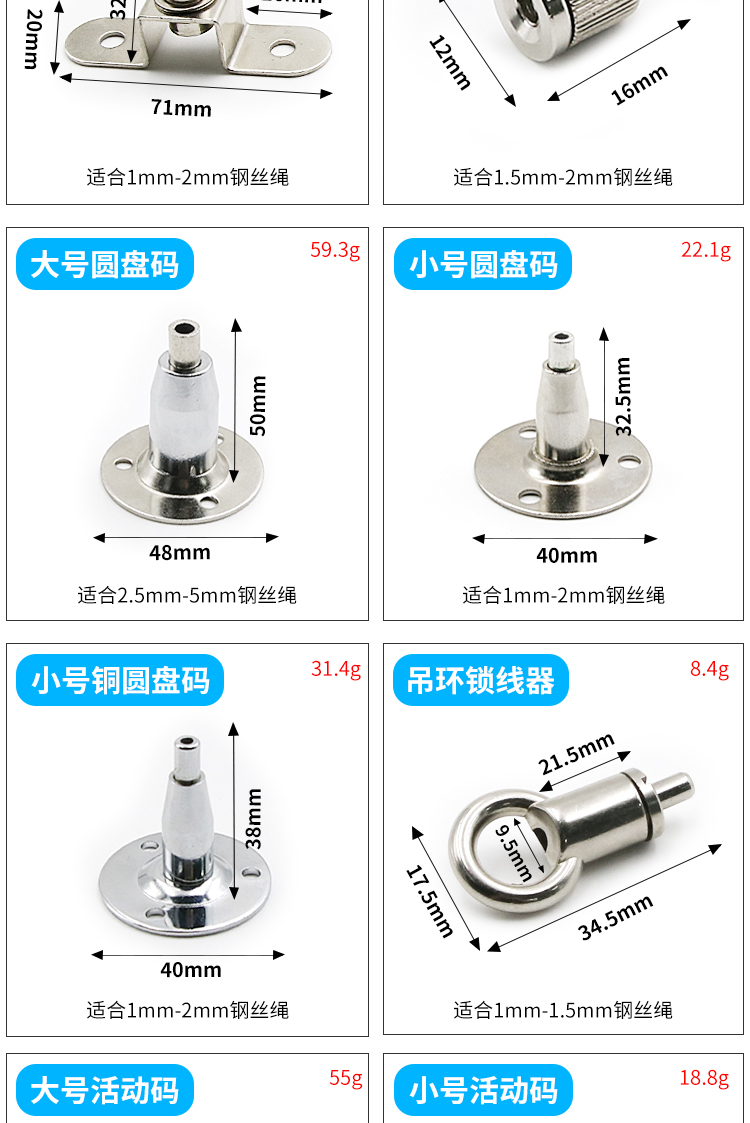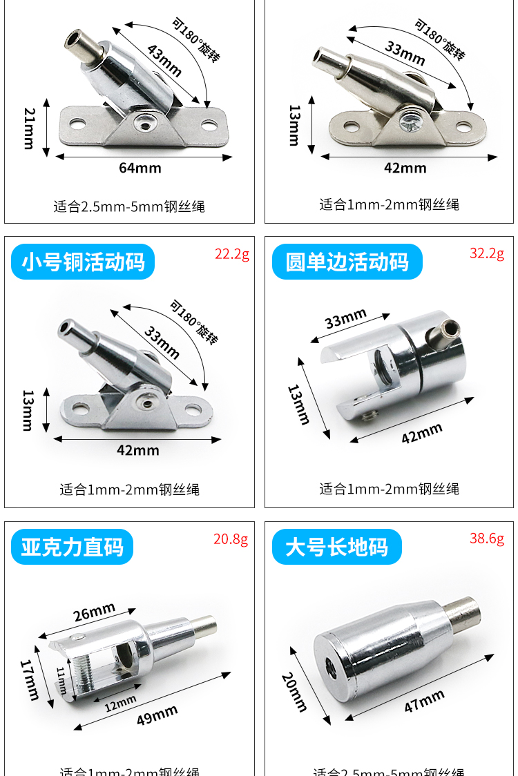 钢丝吊码圆盘码活动码玻璃层板悬挂吊绳配件锁扣广告牌亚克力吊件