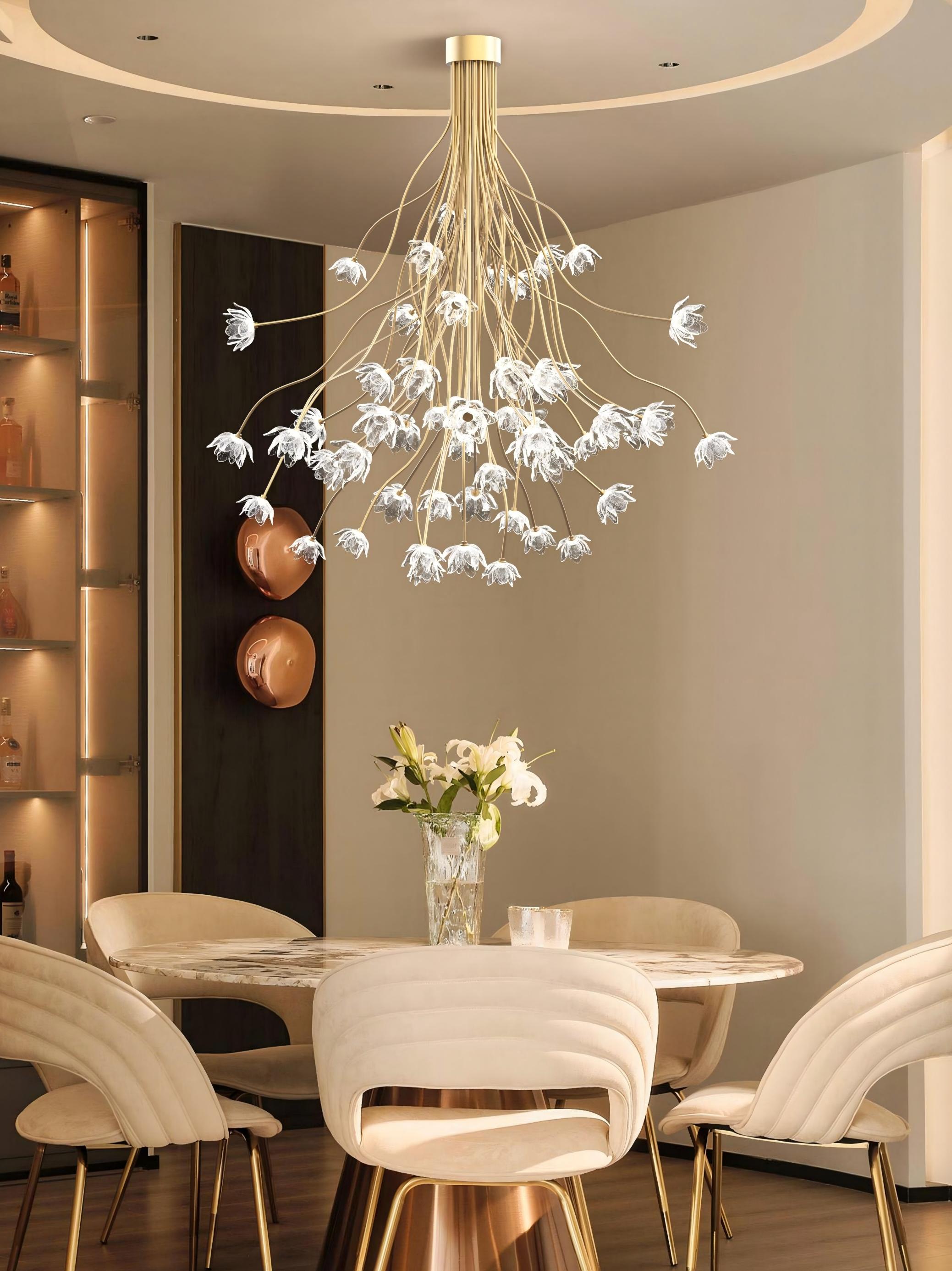 每一件“冰花”作品都是独一无二的。每一个元素都是由技艺精湛的玻璃吹制大师通过口吹的方式制成的,从而形成了独特的晶体表面纹理,这种纹理能够反射和散射光线,呈现出一种无穷变化、充满自然韵味的图案——展现出冰晶形成的分形之美。冰花系列将实用照明与雕塑艺术完美融合,成为追求独特设计的室内设计师们首选的优质产品,适用于别墅客厅、精品酒店套房以及高端餐饮场所等场所作为装饰品。