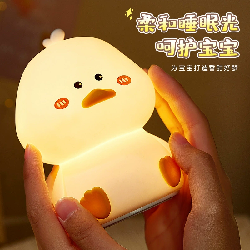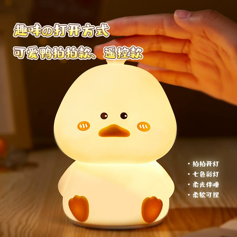 可爱卡通小鸭子硅胶拍拍小夜灯儿童卧室床头伴睡高级感氛围灯礼物