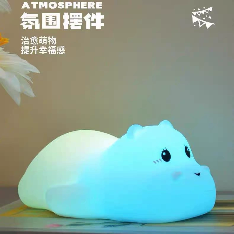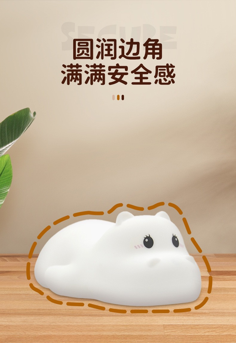 护眼硅胶灯女生儿童礼物卧室伴睡氛围灯河马拍拍灯充电小夜灯