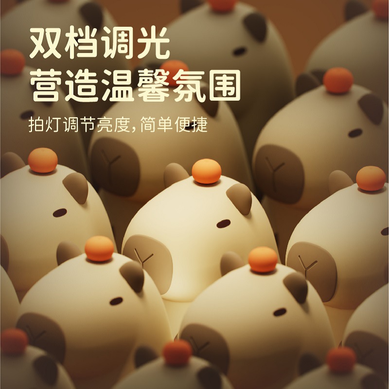 卡皮巴拉硅胶小夜灯可充电调光水豚鼠拍拍灯Capybara