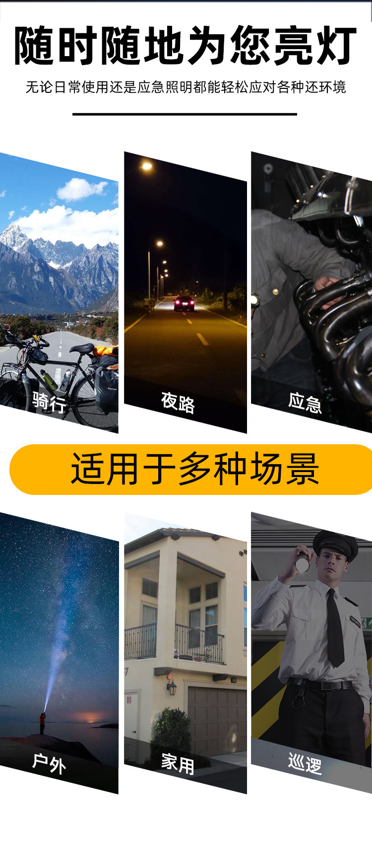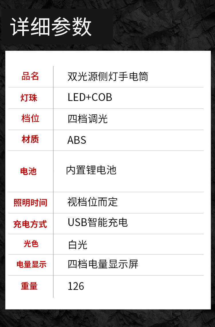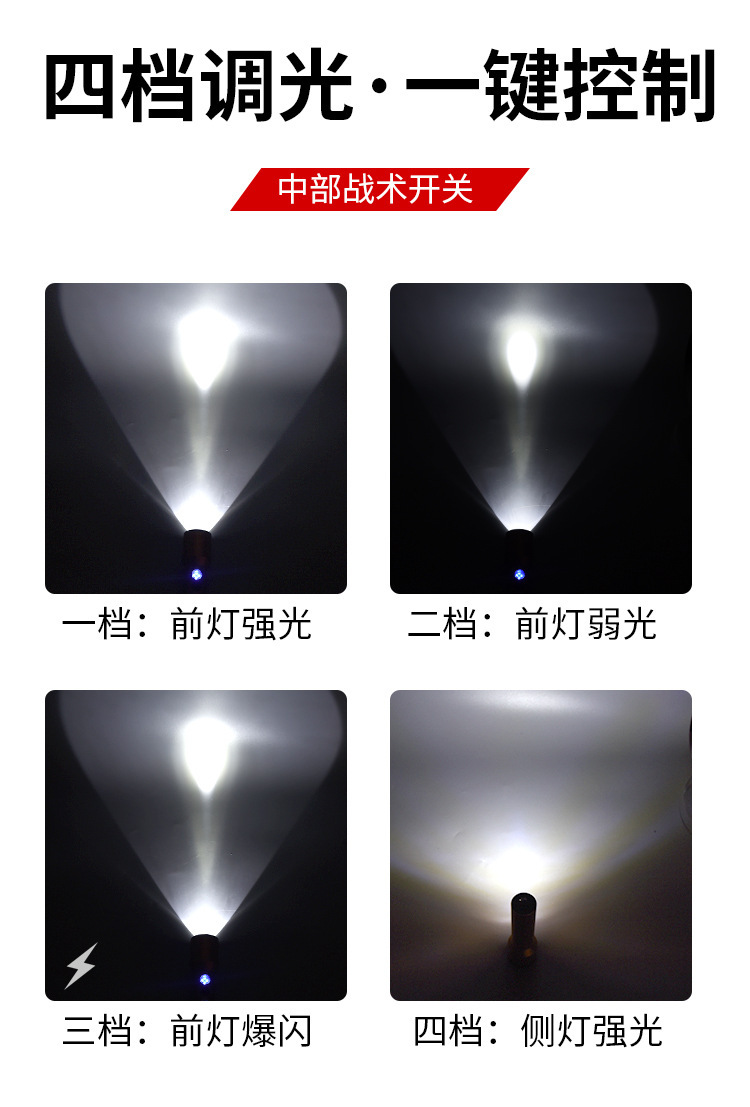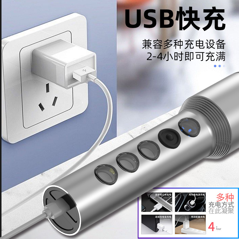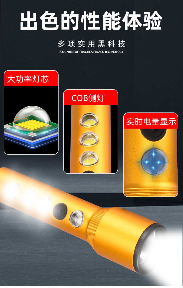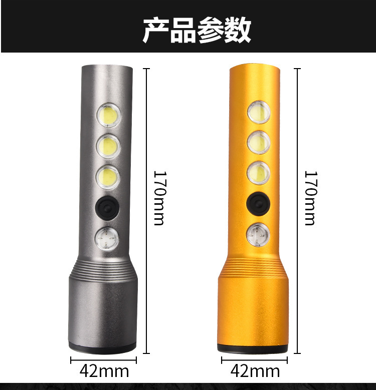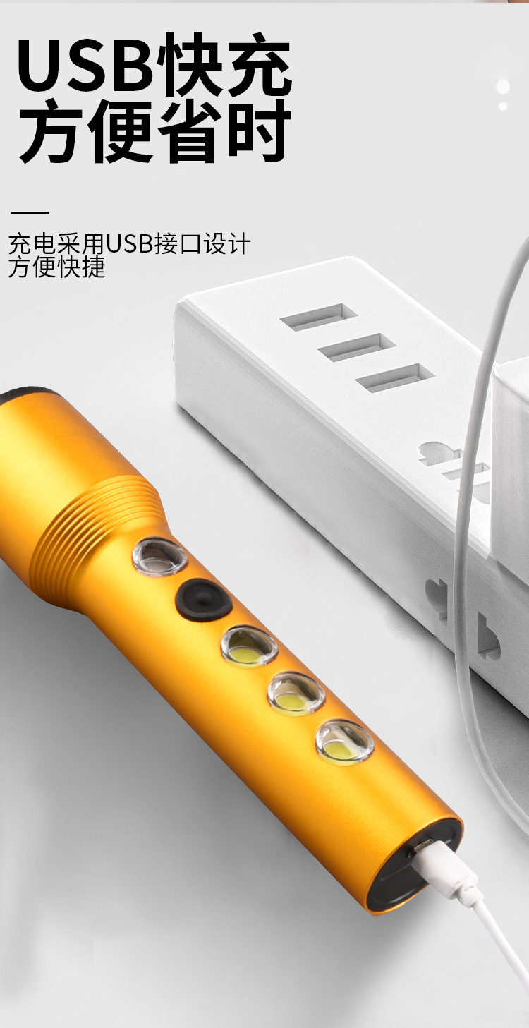 跨境手电筒强光户外超亮LED充电聚泛双光多功能便携式手电批发