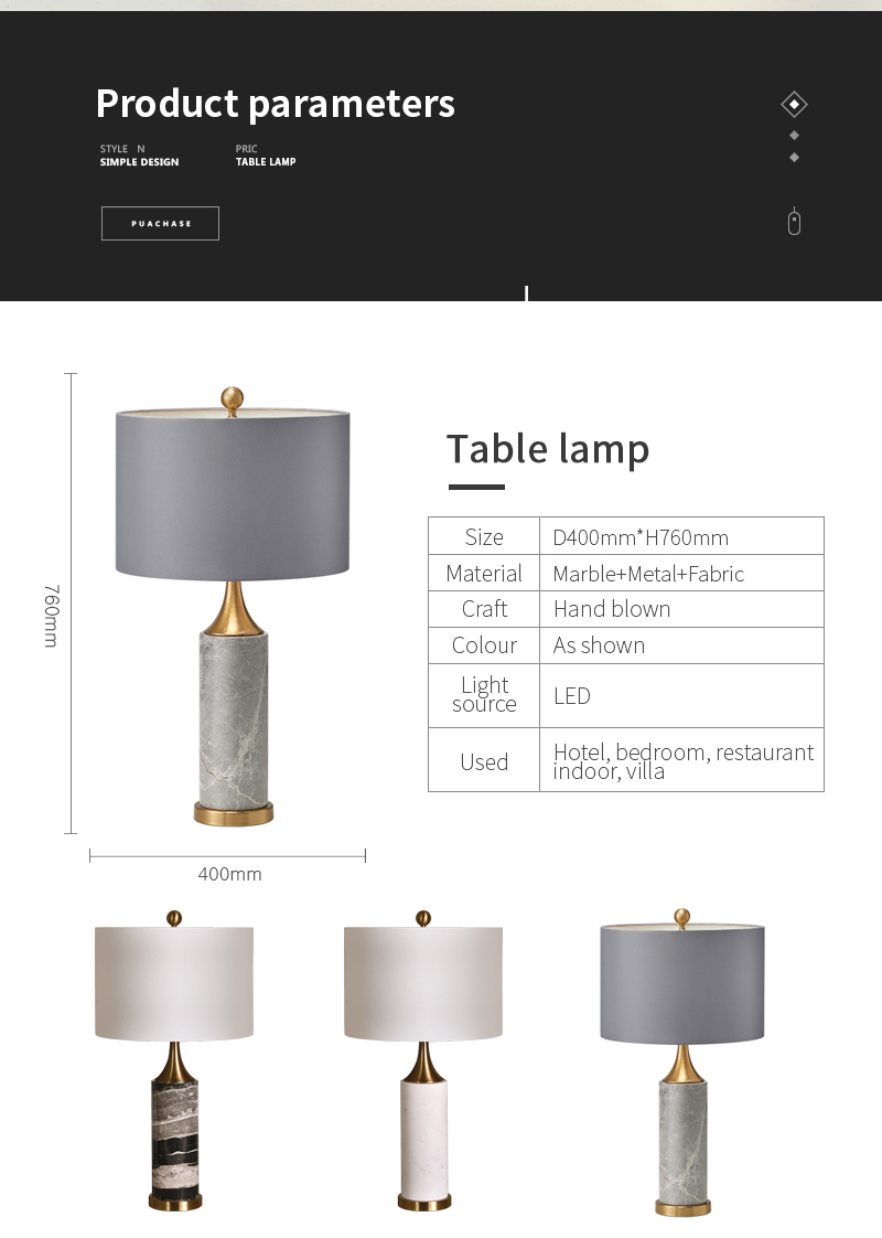 美式简约民宿酒店书房卧室床头大理石后现代客厅沙发茶几装饰台灯