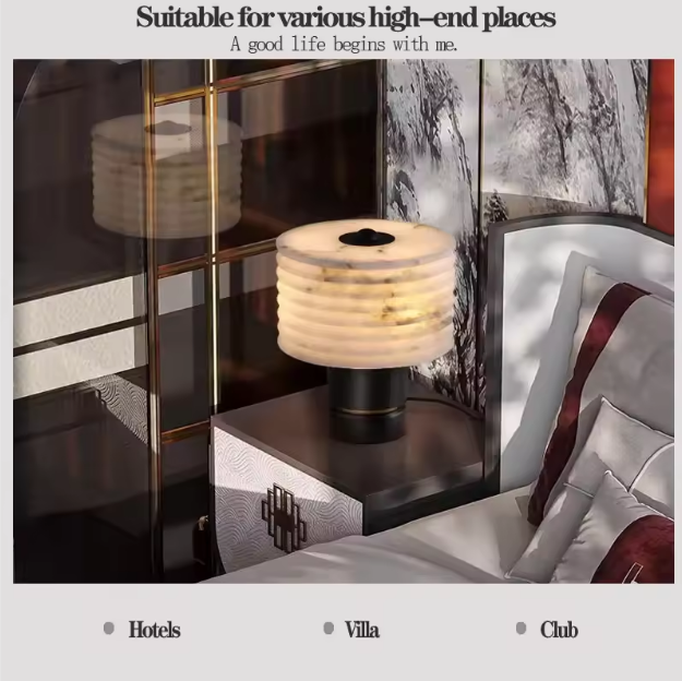 欧照明现代豪华纯天然大理石台灯豪华天然雪花石膏台灯卧室