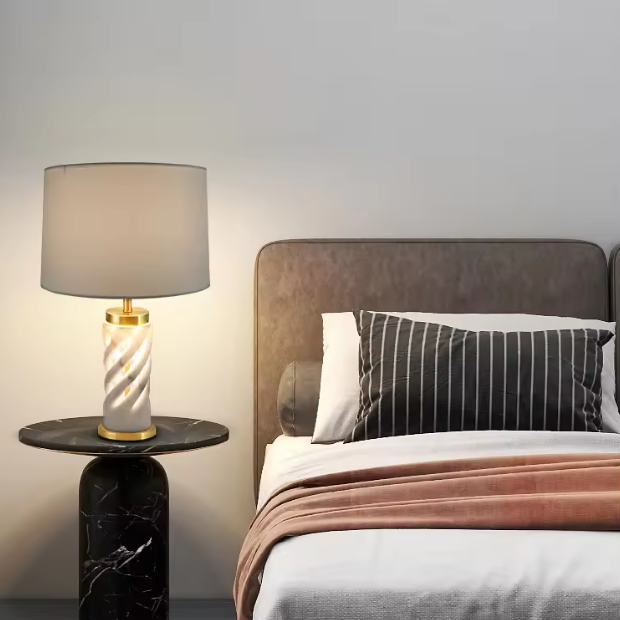 现代奢华简约精品大理石卧室床边装饰雪花石膏台灯