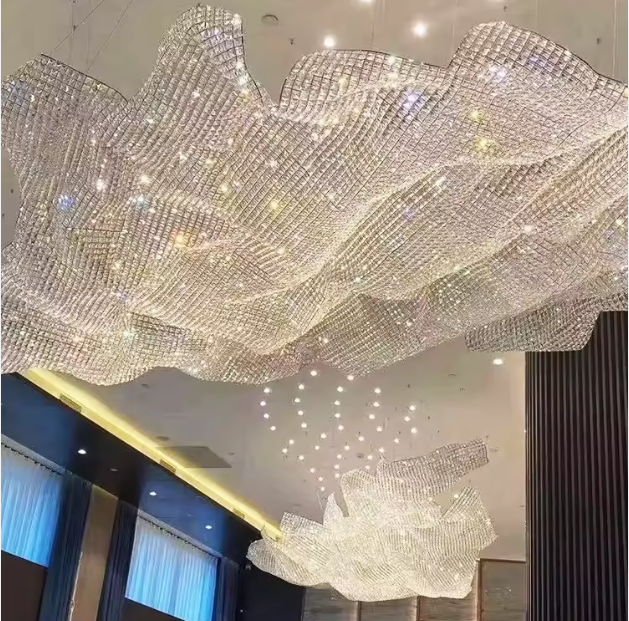 现代水晶室内酒店大堂餐厅装饰超大定制发光二极管吊灯