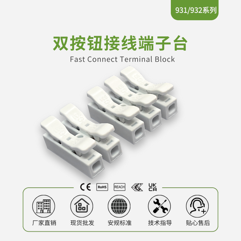 934双边按钮接线端子 双孔进出线 灯具接线端子