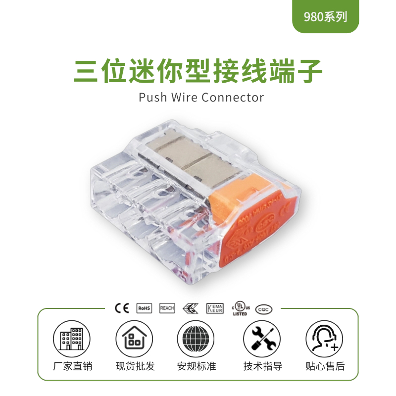 980迷你型快速接线端子 电线直插接线 透明接线端子