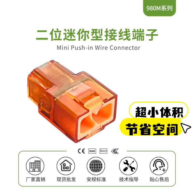 980M迷你接线端子 直插线接线 2位快速接线端子 透明外壳