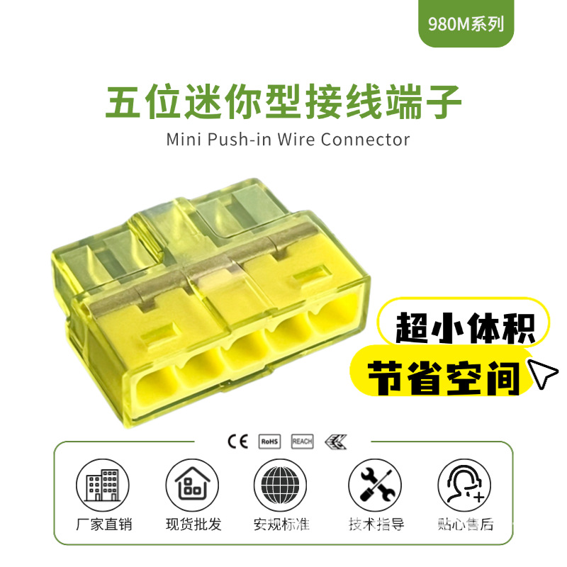 980M迷你接线端子 直插线接线 5位快速接线端子 透明外壳