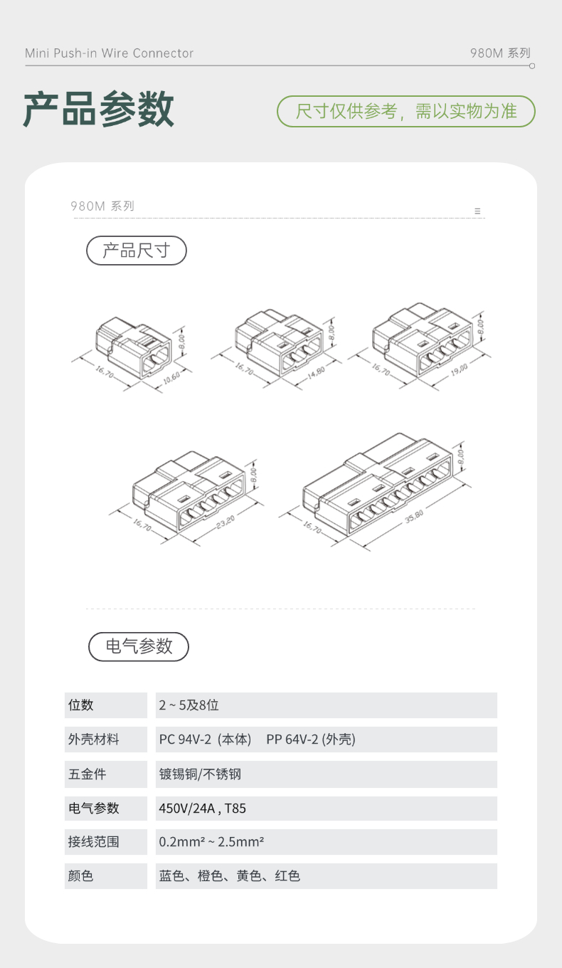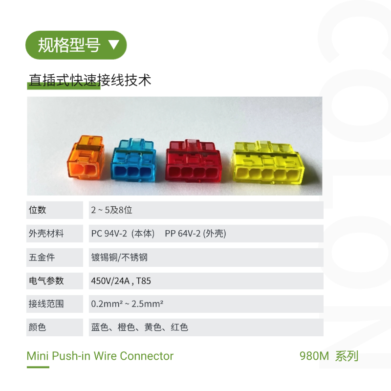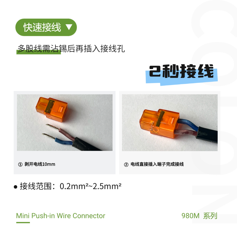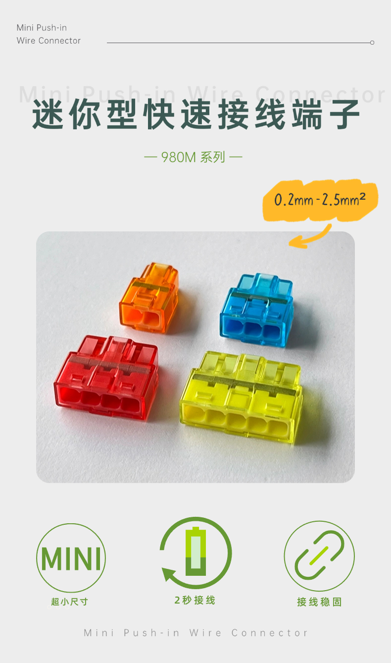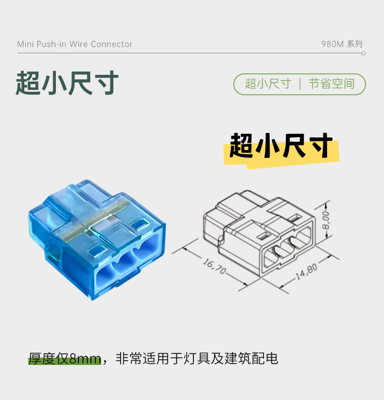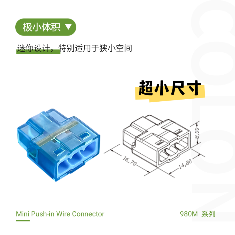 980M迷你型快速接线端子 电线直插接线 透明接线端子